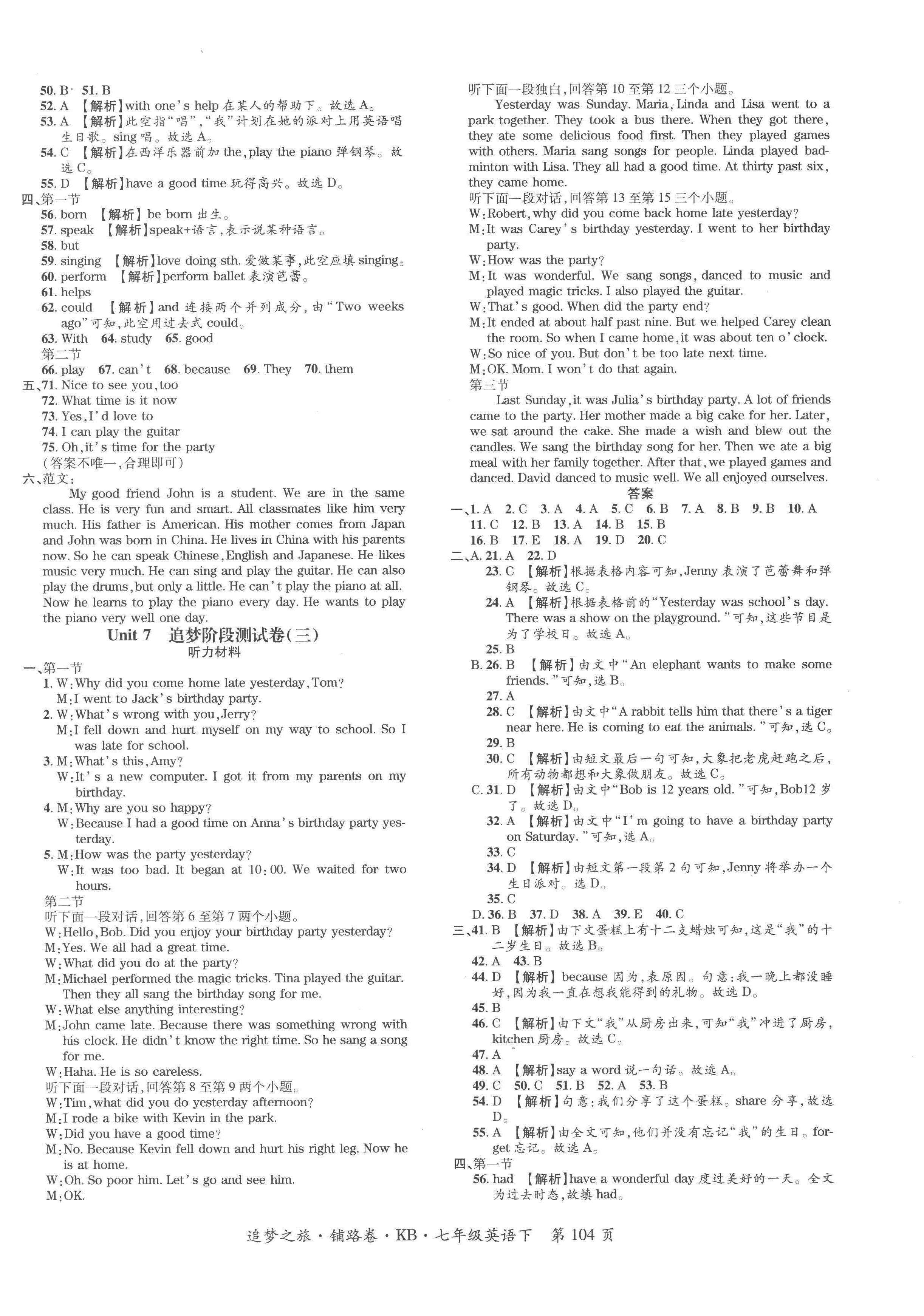注:目前有些书本章节名称可能整理的还不是很完善,但都是按照顺序排列的,请同学们按照顺序仔细查找。练习册 2023年追梦之旅铺路卷七年级英语下册课标版河南专版 答案主要是用来给同学们做完题方便对答案用的,请勿直接抄袭。