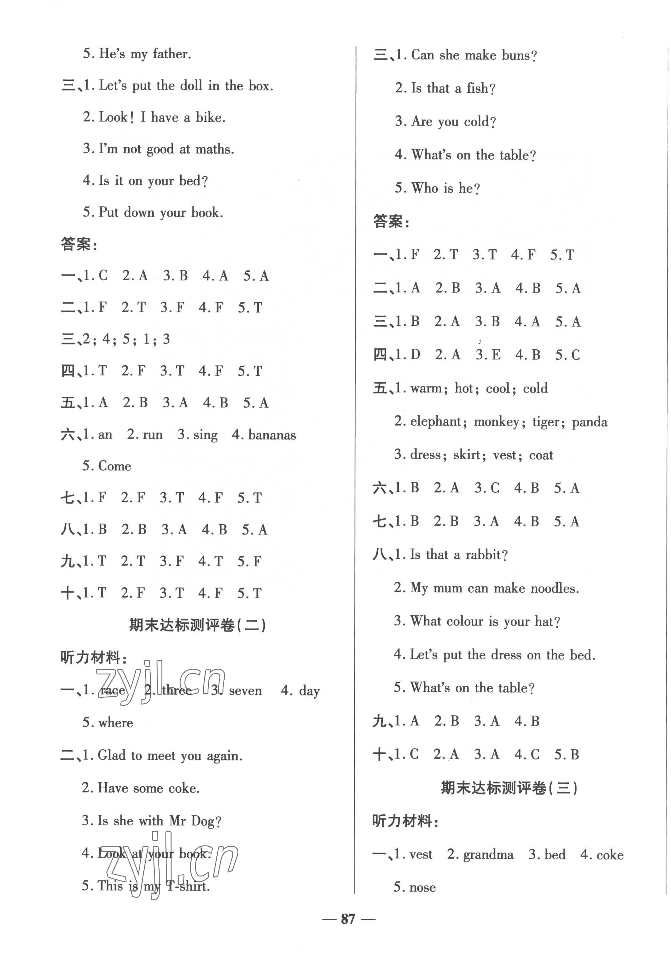 《2023年金优教辅全能练考卷三年级英语下册科普版》