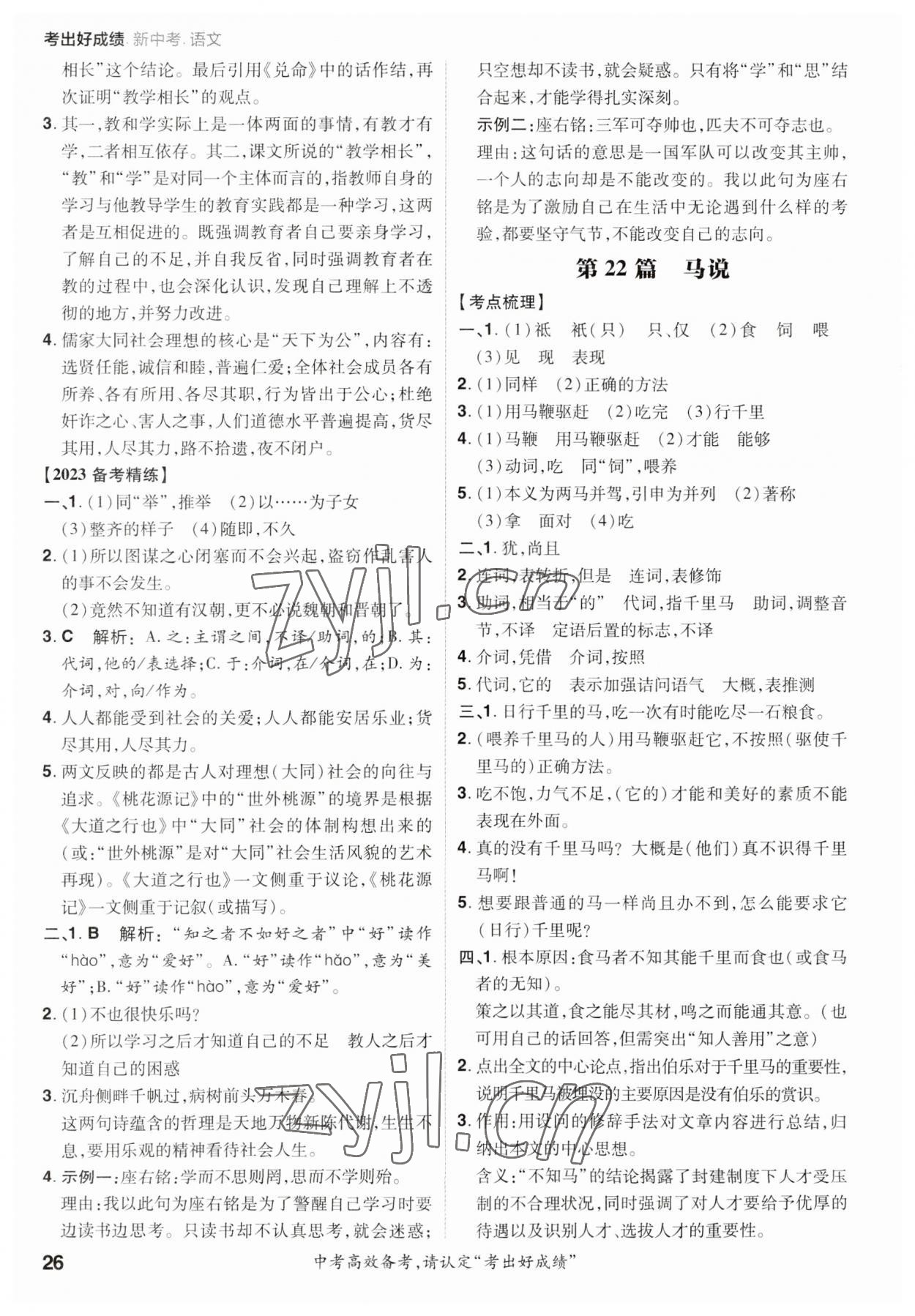 注:目前有些书本章节名称可能整理的还不是很完善,但都是按照顺序排列的,请同学们按照顺序仔细查找。练习册 2023年考出好成绩中考总复习语文 答案主要是用来给同学们做完题方便对答案用的,请勿直接抄袭。