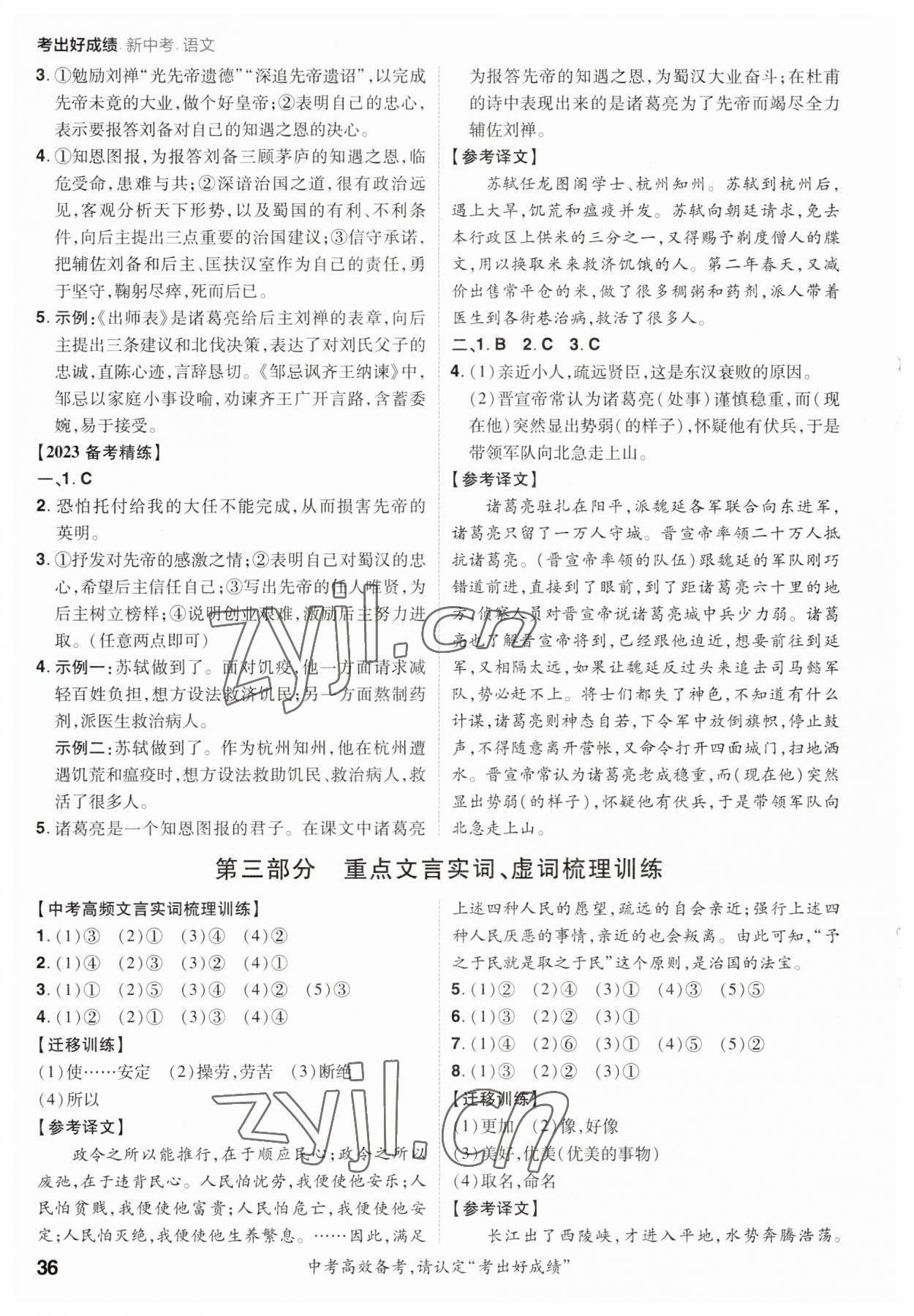 注:目前有些书本章节名称可能整理的还不是很完善,但都是按照顺序排列的,请同学们按照顺序仔细查找。练习册 2023年考出好成绩中考总复习语文 答案主要是用来给同学们做完题方便对答案用的,请勿直接抄袭。