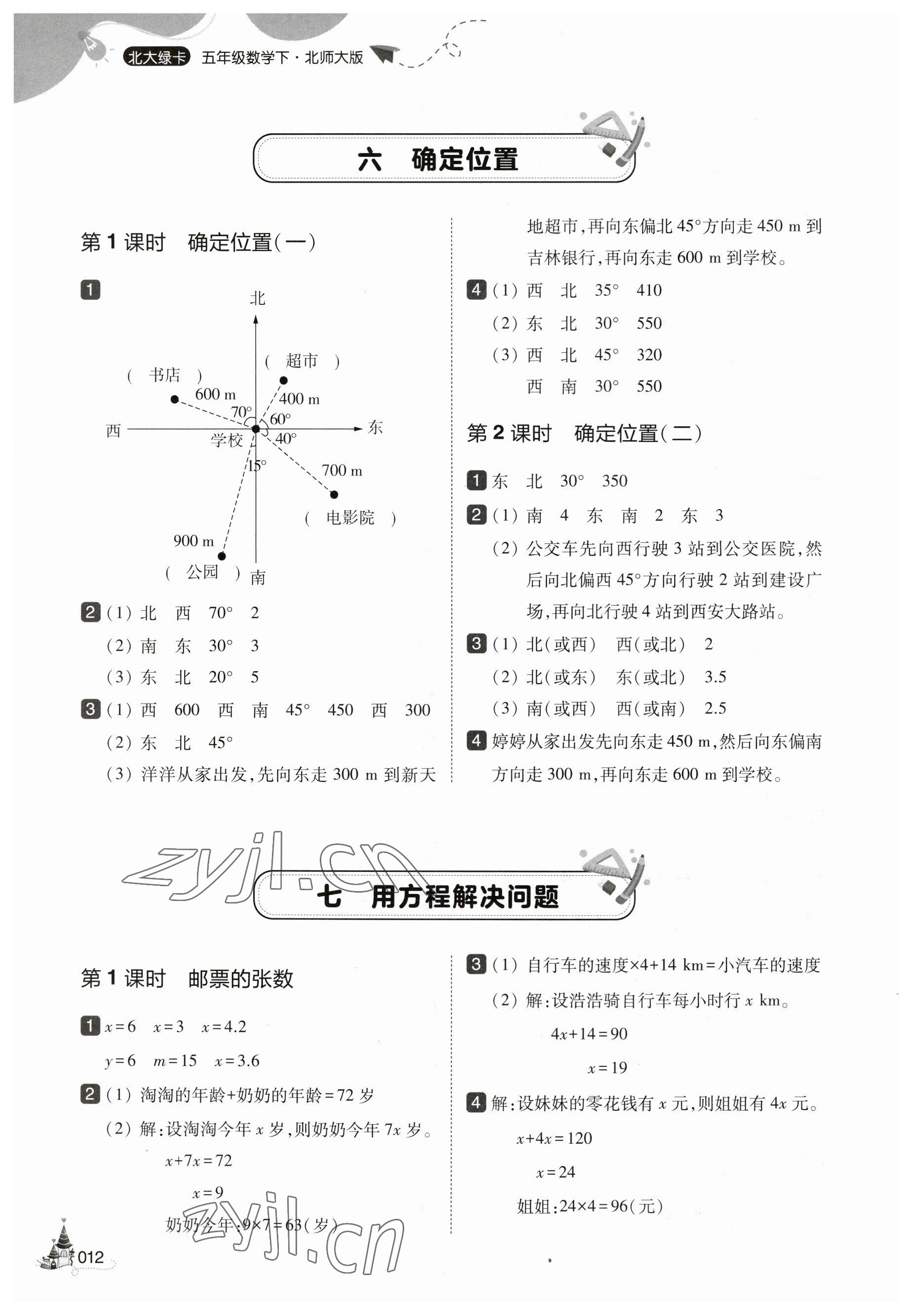 注:目前有些书本章节名称可能整理的还不是很完善,但都是按照顺序排列的,请同学们按照顺序仔细查找。练习册 2023年北大绿卡五年级数学下册北师大版 答案主要是用来给同学们做完题方便对答案用的,请勿直接抄袭。