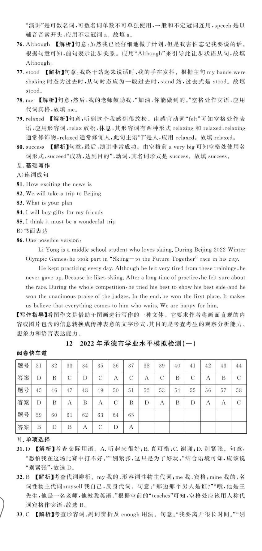 注:目前有些书本章节名称可能整理的还不是很完善,但都是按照顺序排列的,请同学们按照顺序仔细查找。练习册 2023年中考第一卷英语河北专版 答案主要是用来给同学们做完题方便对答案用的,请勿直接抄袭。