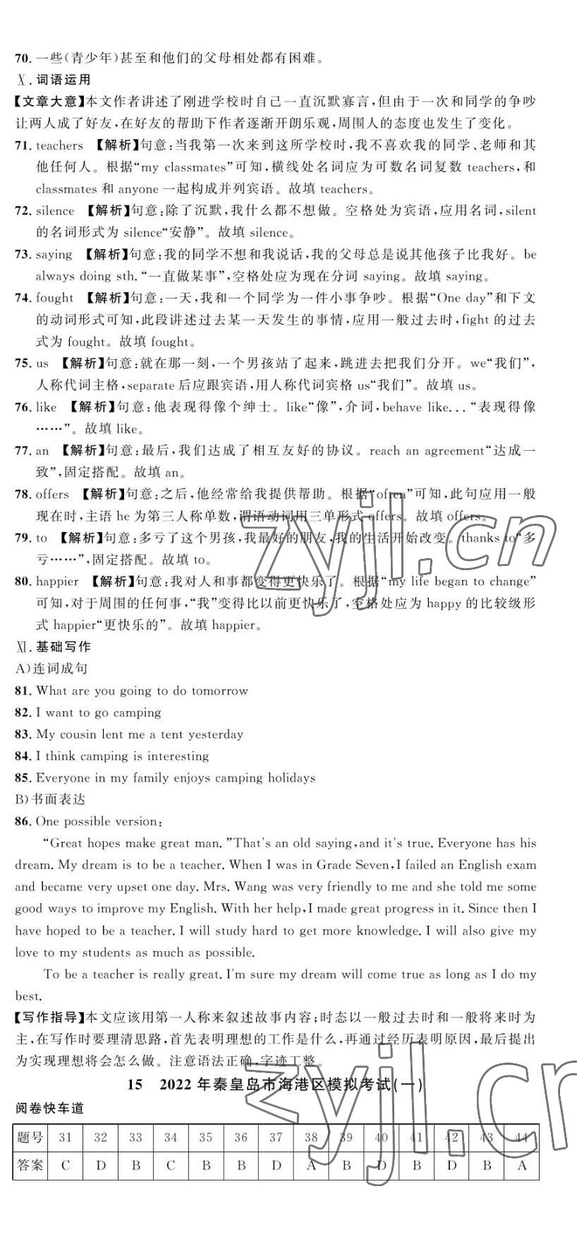 注:目前有些书本章节名称可能整理的还不是很完善,但都是按照顺序排列的,请同学们按照顺序仔细查找。练习册 2023年中考第一卷英语河北专版 答案主要是用来给同学们做完题方便对答案用的,请勿直接抄袭。