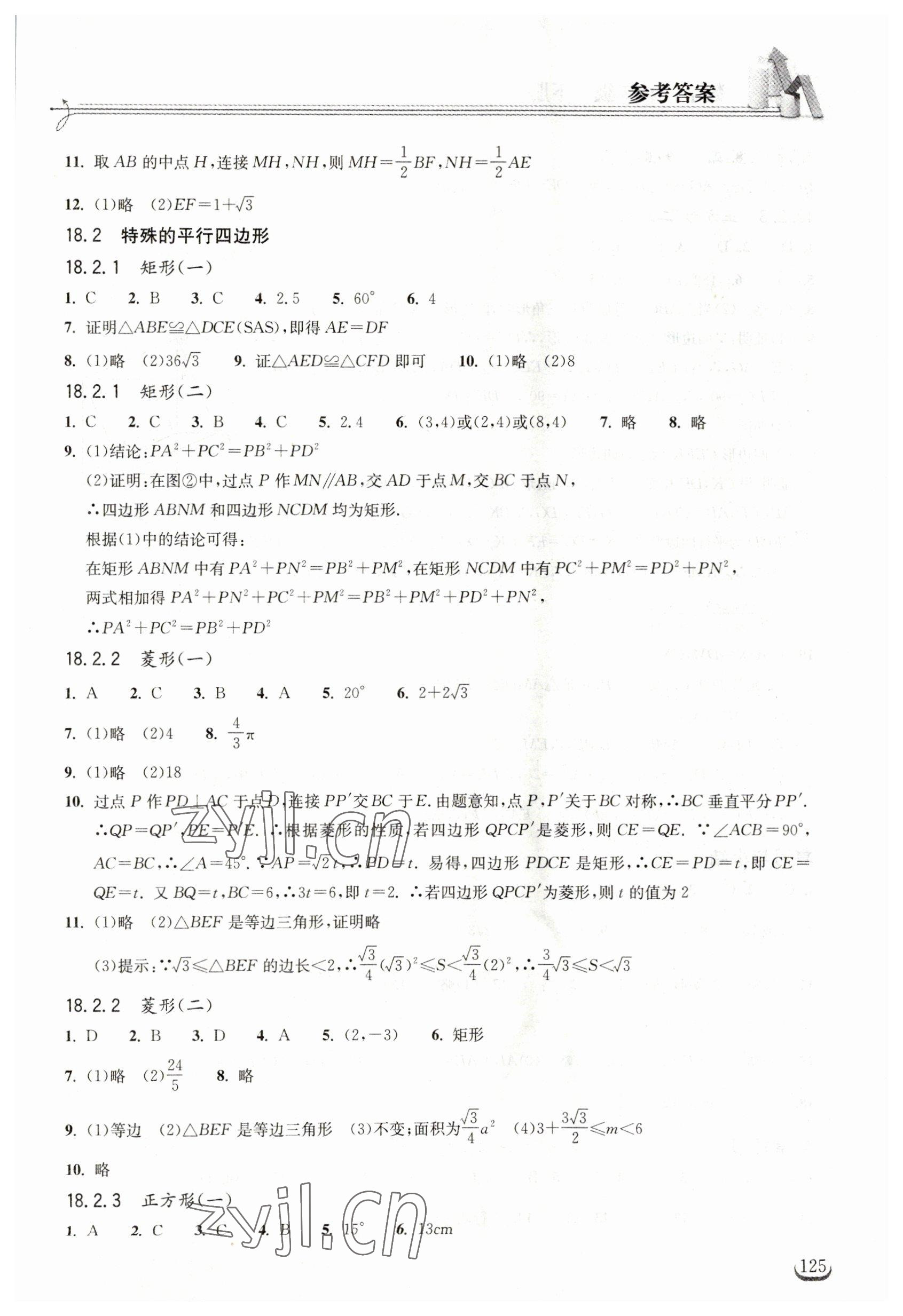 注:目前有些书本章节名称可能整理的还不是很完善,但都是按照顺序排列的,请同学们按照顺序仔细查找。练习册 2023年长江作业本同步练习册八年级数学下册人教版 答案主要是用来给同学们做完题方便对答案用的,请勿直接抄袭。