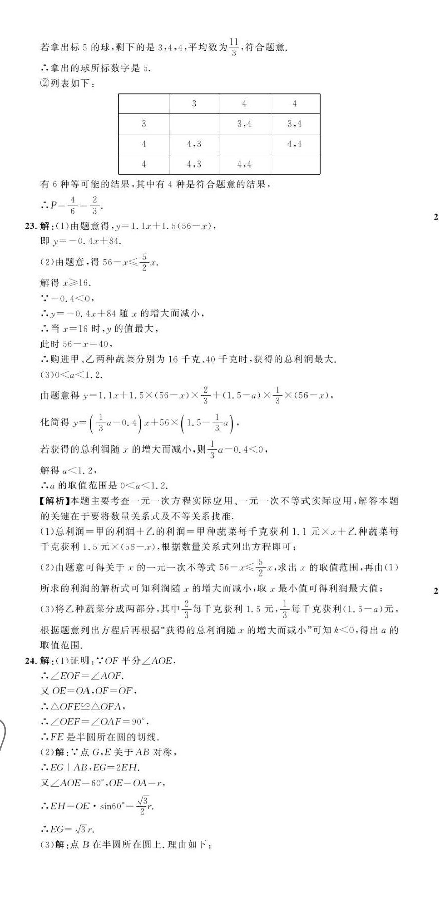 2023年中考第一卷数学河北专版