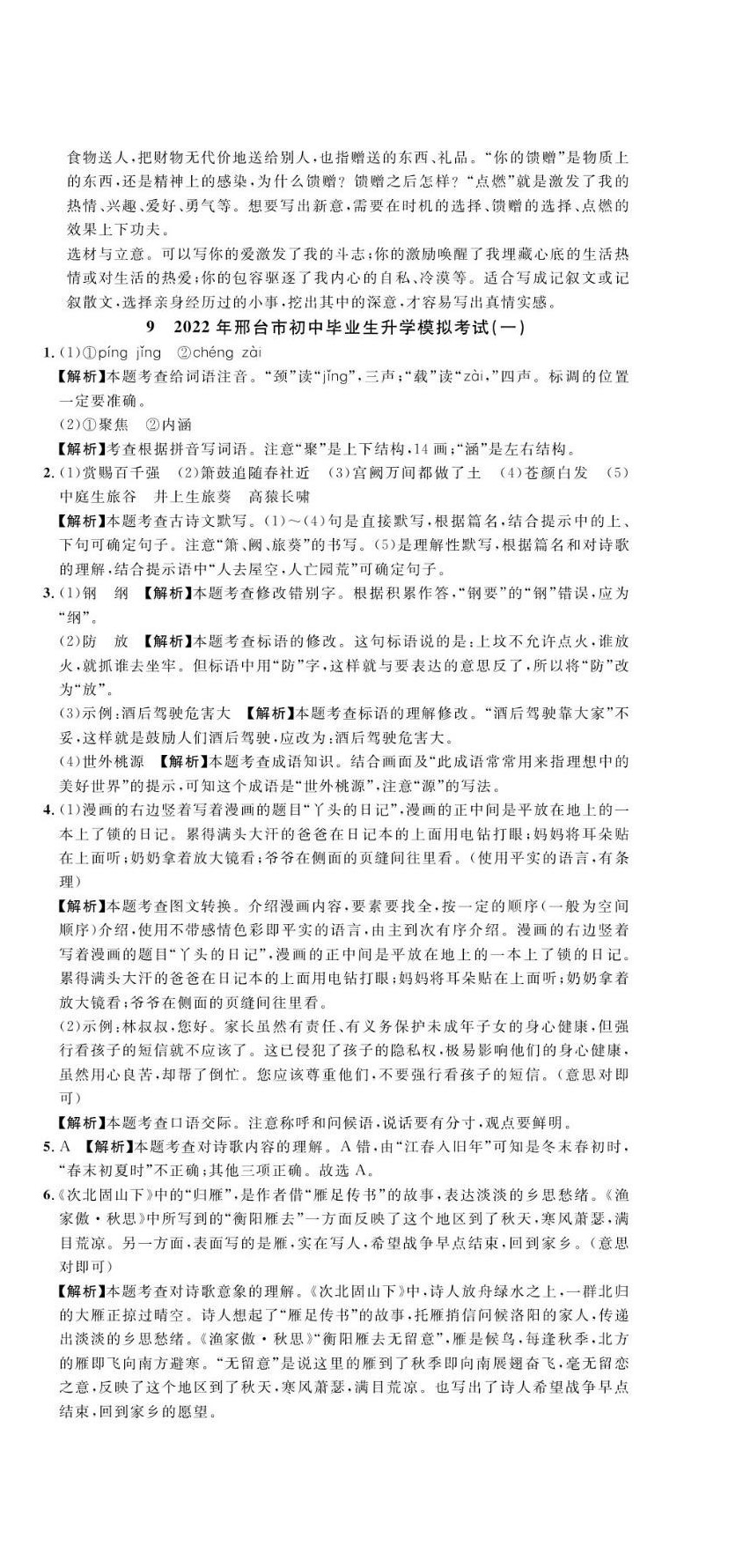 注:目前有些书本章节名称可能整理的还不是很完善,但都是按照顺序排列的,请同学们按照顺序仔细查找。练习册 2023年中考第一卷语文河北专版 答案主要是用来给同学们做完题方便对答案用的,请勿直接抄袭。