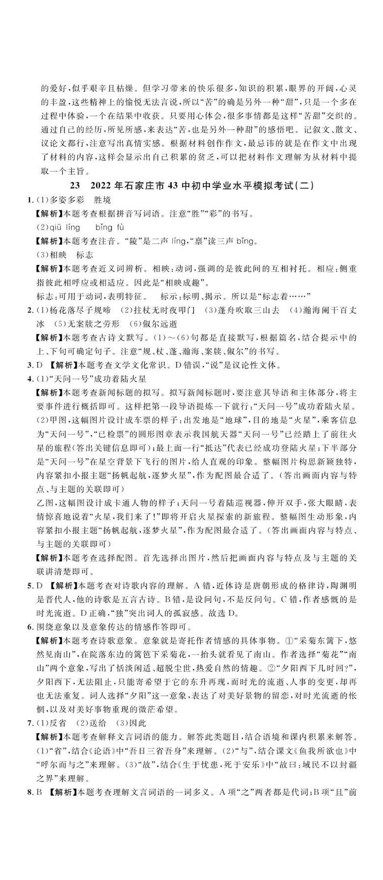 注:目前有些书本章节名称可能整理的还不是很完善,但都是按照顺序排列的,请同学们按照顺序仔细查找。练习册 2023年中考第一卷语文河北专版 答案主要是用来给同学们做完题方便对答案用的,请勿直接抄袭。