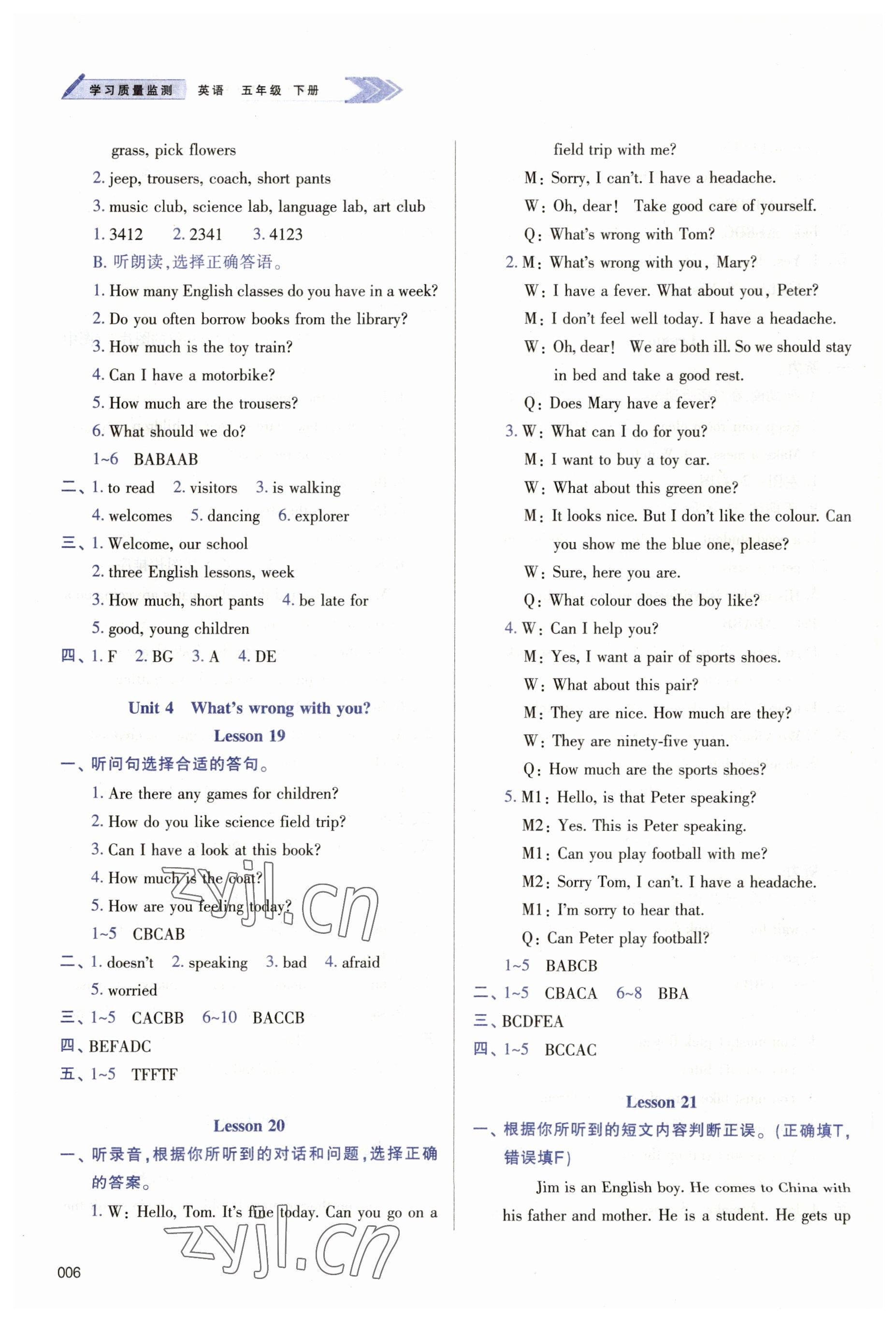 注:目前有些书本章节名称可能整理的还不是很完善,但都是按照顺序排列的,请同学们按照顺序仔细查找。练习册 2023年学习质量监测五年级英语下册人教版 答案主要是用来给同学们做完题方便对答案用的,请勿直接抄袭。