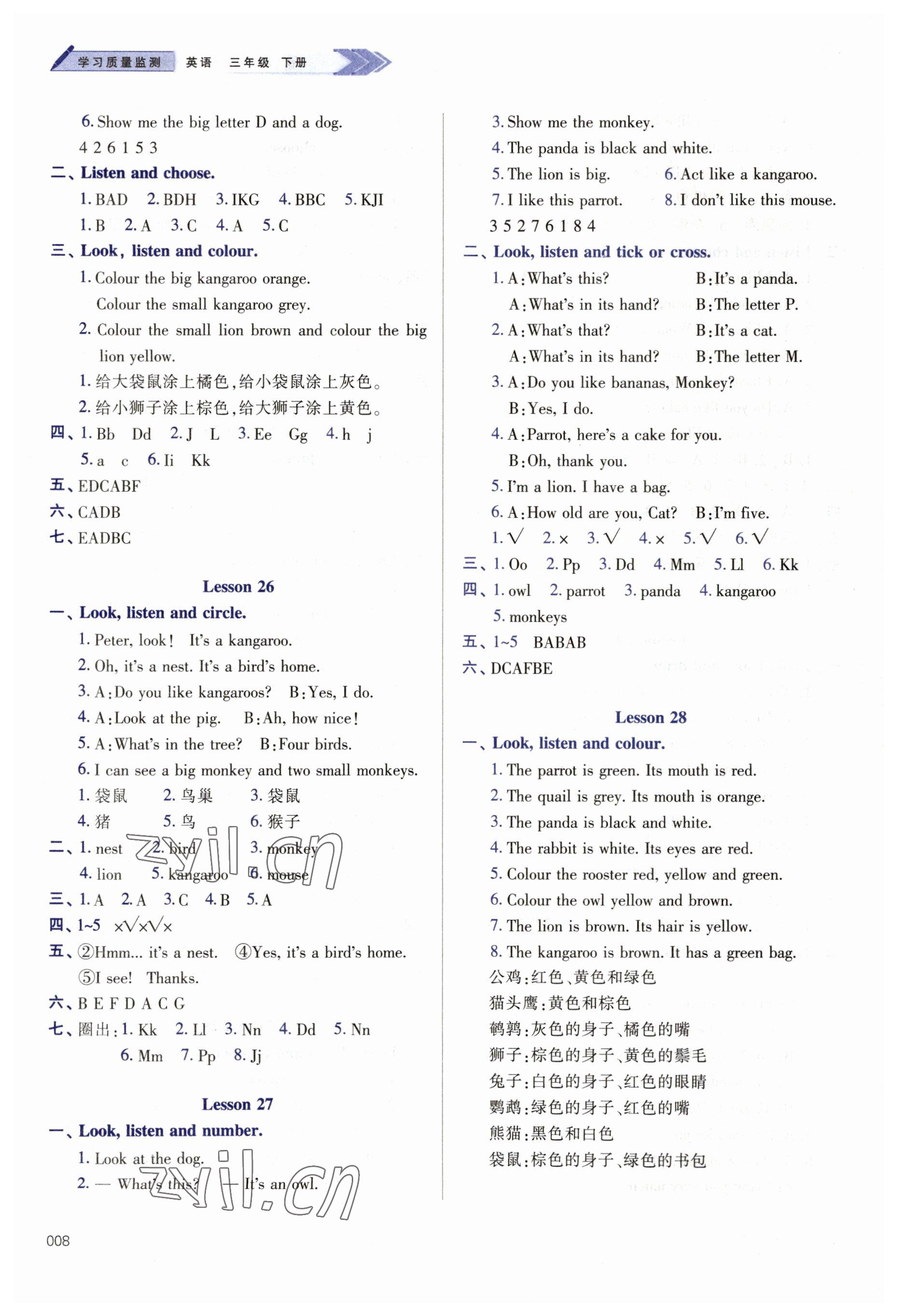 注:目前有些书本章节名称可能整理的还不是很完善,但都是按照顺序排列的,请同学们按照顺序仔细查找。练习册 2023年学习质量监测三年级英语下册人教版 答案主要是用来给同学们做完题方便对答案用的,请勿直接抄袭。