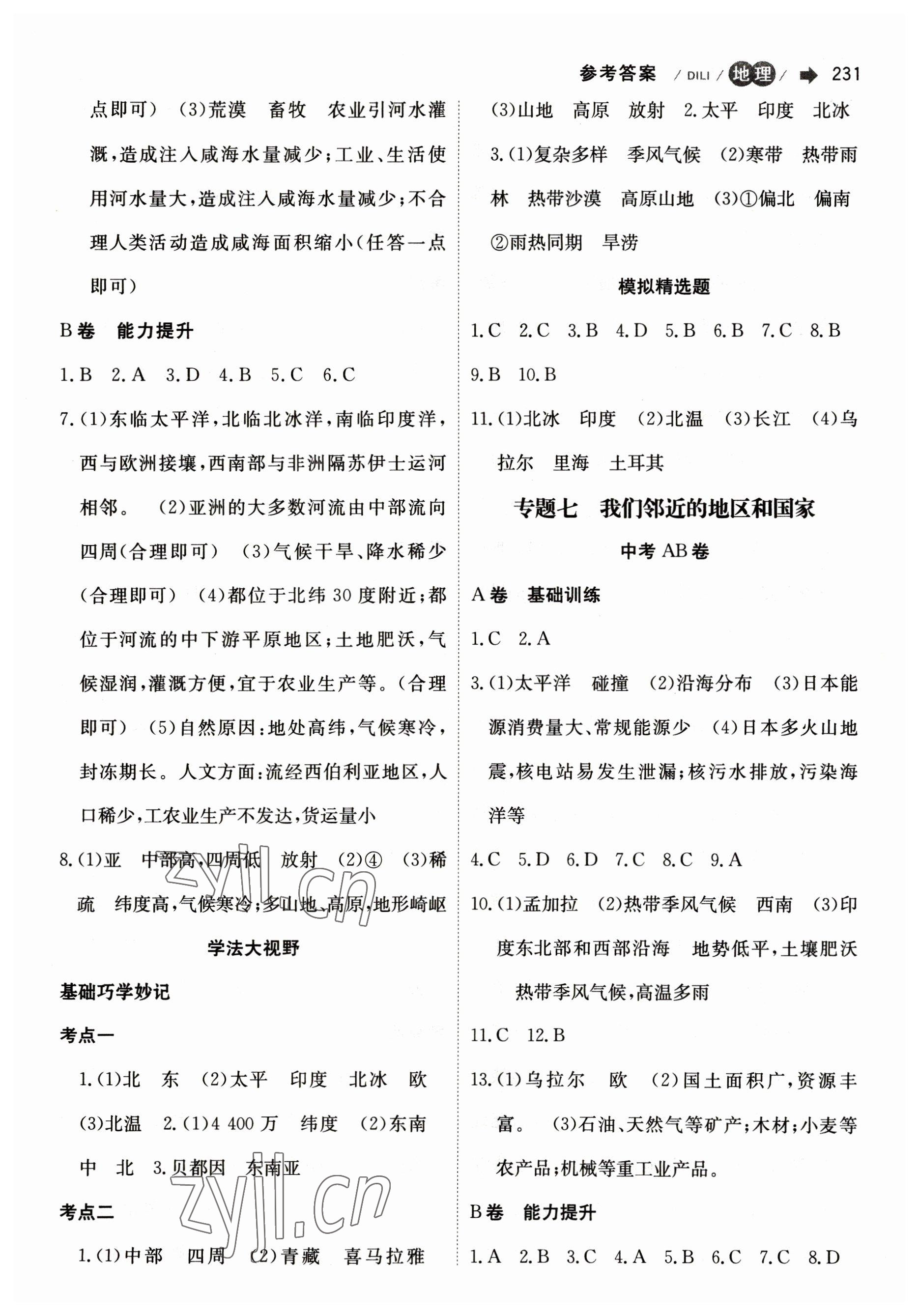 注:目前有些书本章节名称可能整理的还不是很完善,但都是按照顺序排列的,请同学们按照顺序仔细查找。练习册 2023年大中考地理 答案主要是用来给同学们做完题方便对答案用的,请勿直接抄袭。