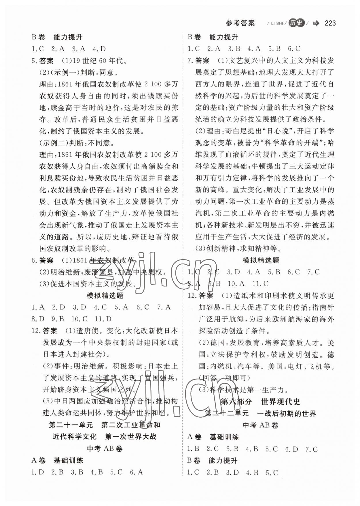 注:目前有些书本章节名称可能整理的还不是很完善,但都是按照顺序排列的,请同学们按照顺序仔细查找。练习册 2023年大中考历史 答案主要是用来给同学们做完题方便对答案用的,请勿直接抄袭。