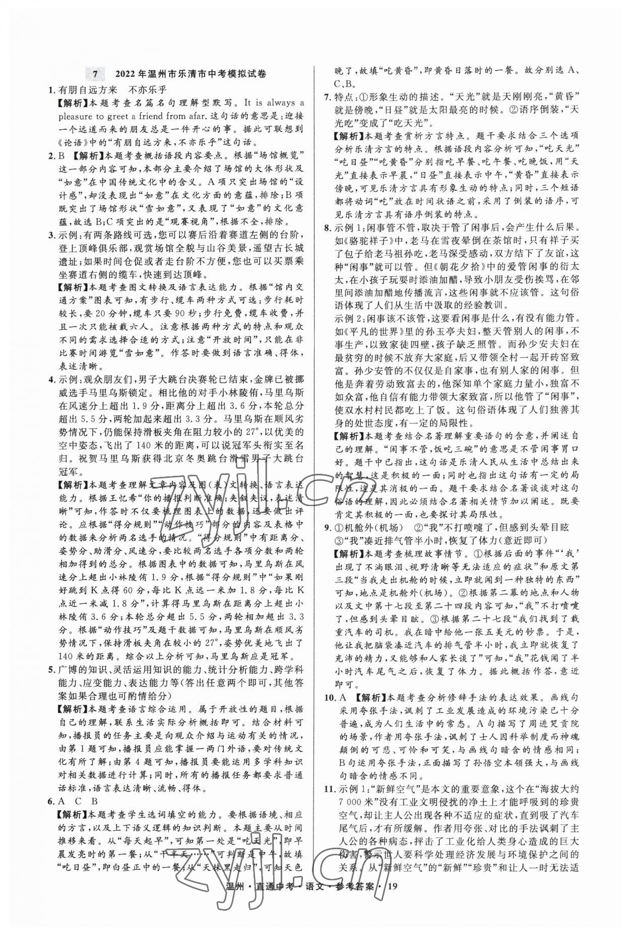 2023年直通中考中考试题精编语文温州专版