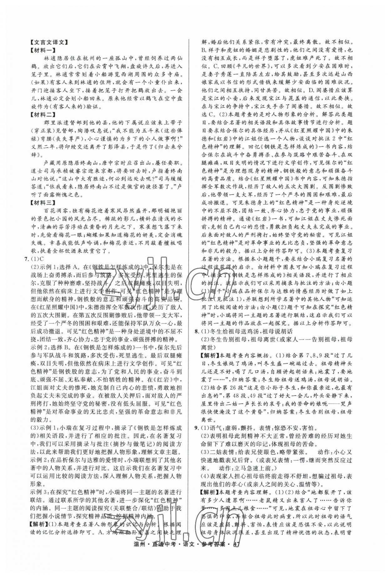 2023年直通中考中考试题精编语文温州专版