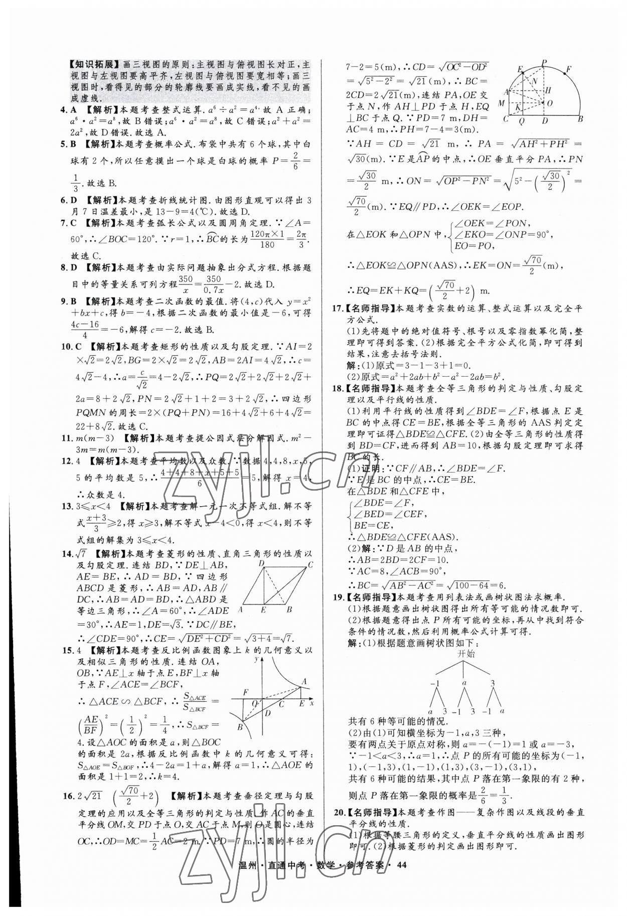 注:目前有些书本章节名称可能整理的还不是很完善,但都是按照顺序排列的,请同学们按照顺序仔细查找。练习册 2023年直通中考中考试题精编数学温州专版 答案主要是用来给同学们做完题方便对答案用的,请勿直接抄袭。