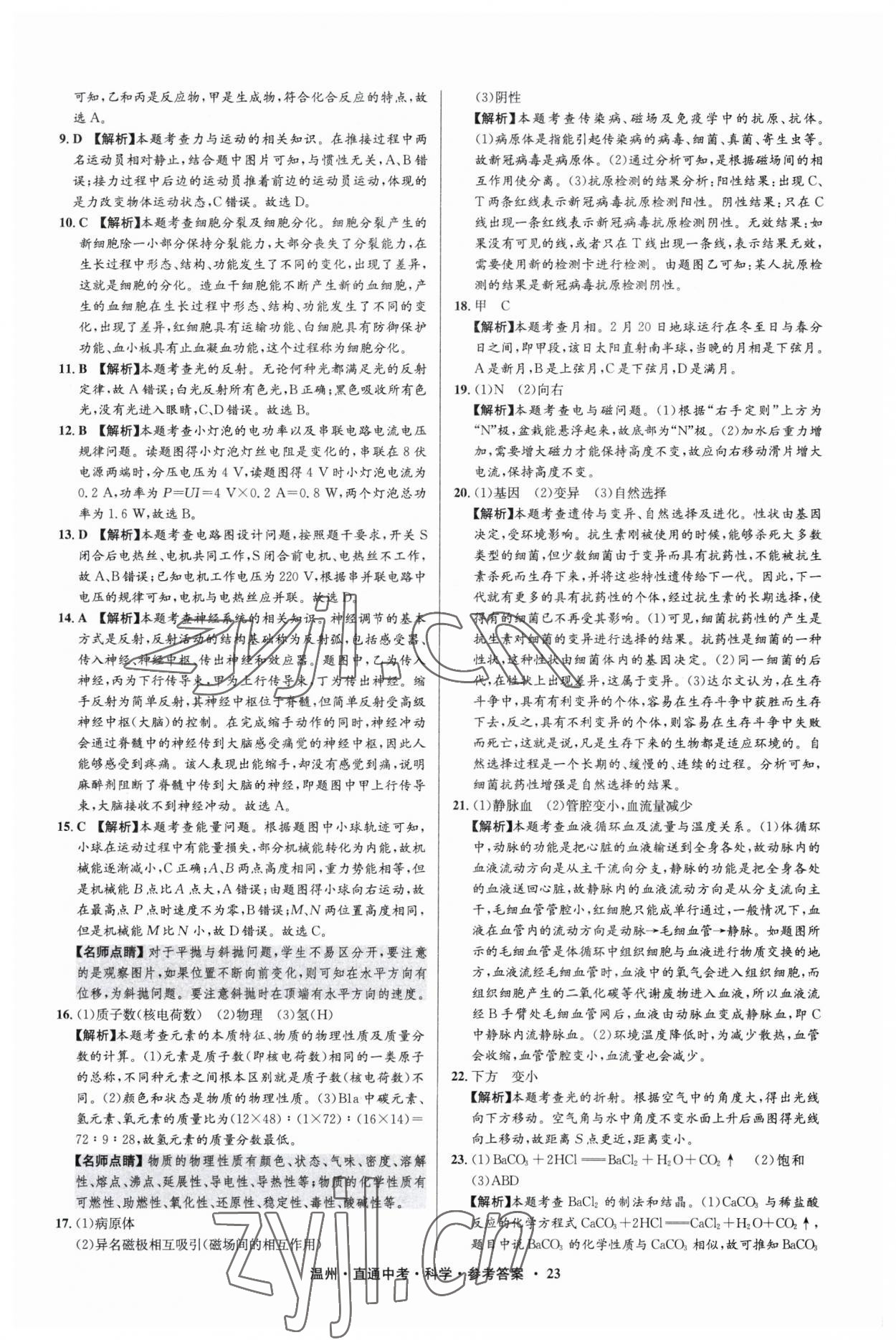 注:目前有些书本章节名称可能整理的还不是很完善,但都是按照顺序排列的,请同学们按照顺序仔细查找。练习册 2023年直通中考中考试题精编科学温州专版 答案主要是用来给同学们做完题方便对答案用的,请勿直接抄袭。