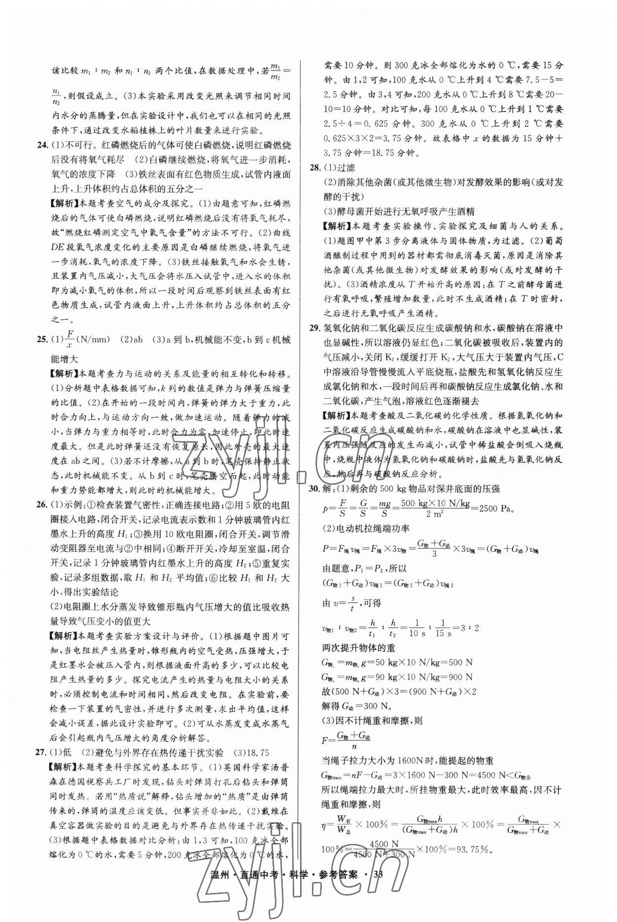 2023年直通中考中考试题精编科学温州专版