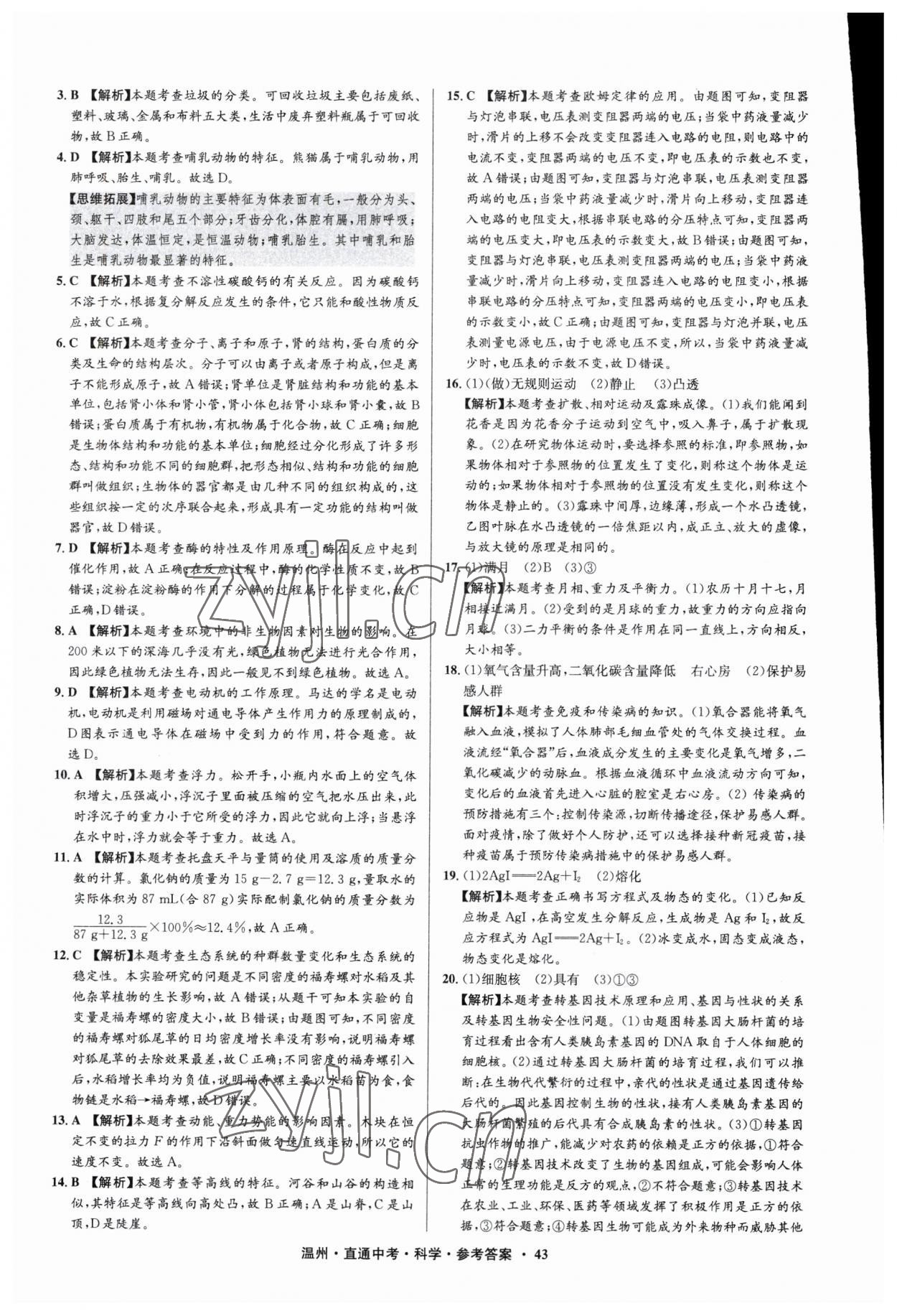 注:目前有些书本章节名称可能整理的还不是很完善,但都是按照顺序排列的,请同学们按照顺序仔细查找。练习册 2023年直通中考中考试题精编科学温州专版 答案主要是用来给同学们做完题方便对答案用的,请勿直接抄袭。