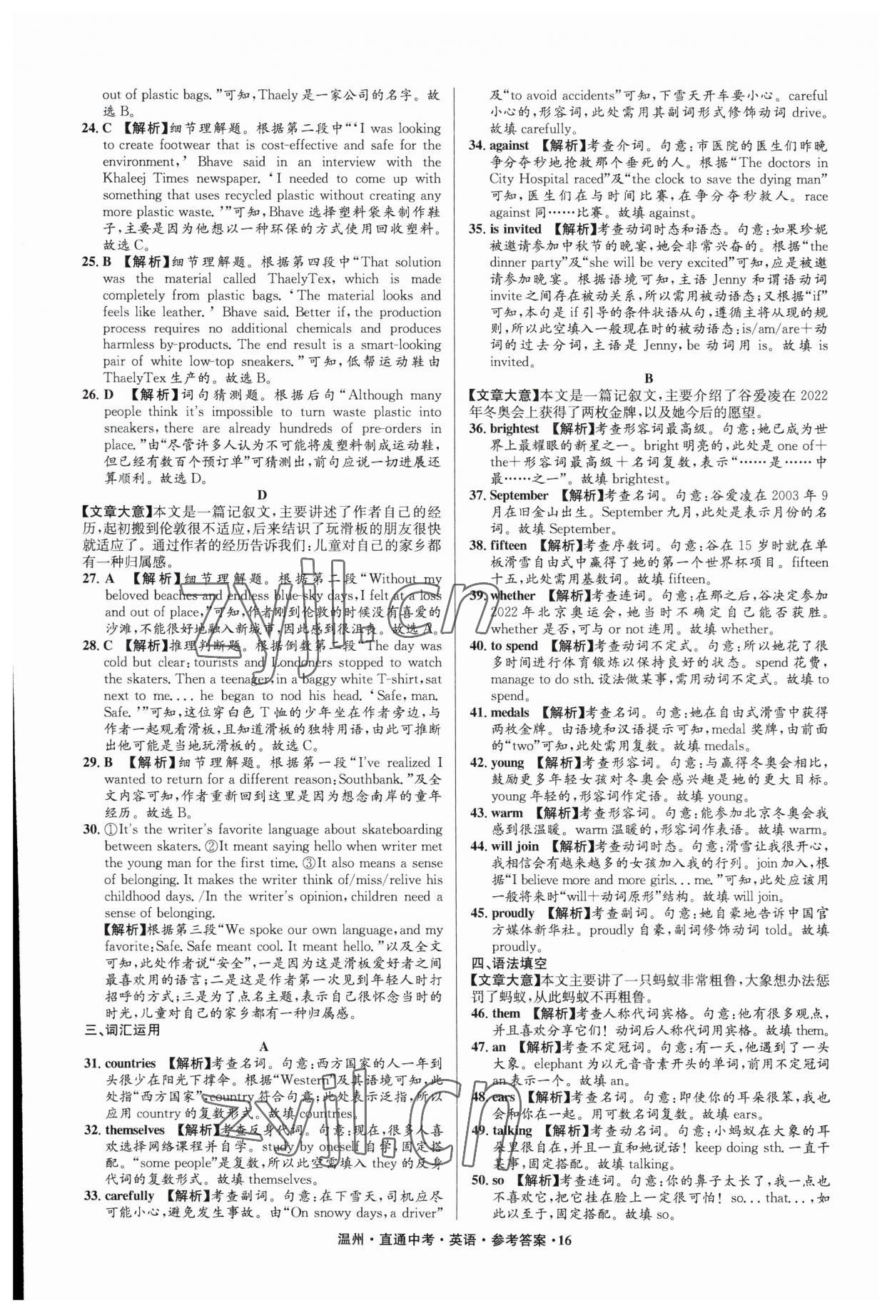 注:目前有些书本章节名称可能整理的还不是很完善,但都是按照顺序排列的,请同学们按照顺序仔细查找。练习册 2023年直通中考中考试题精编英语温州专版 答案主要是用来给同学们做完题方便对答案用的,请勿直接抄袭。