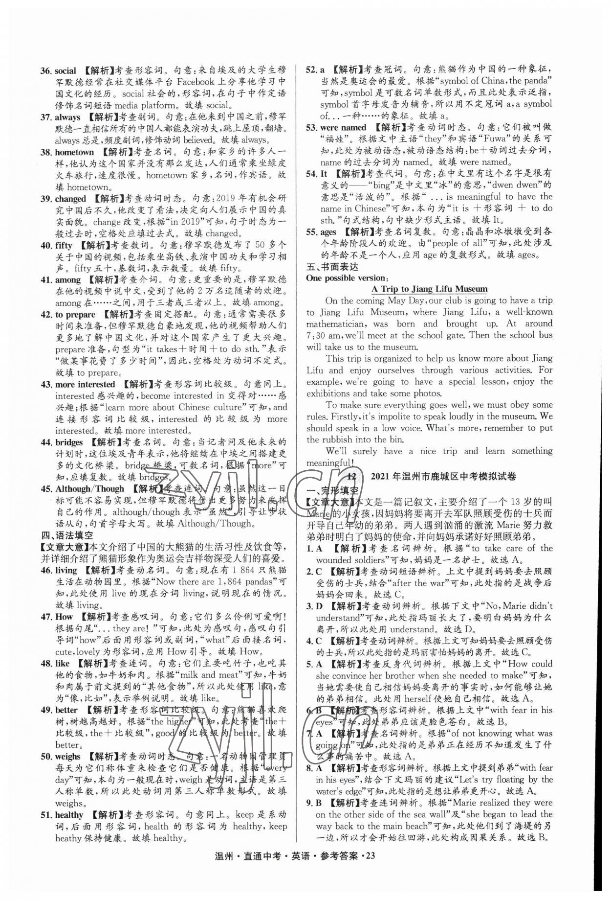 注:目前有些书本章节名称可能整理的还不是很完善,但都是按照顺序排列的,请同学们按照顺序仔细查找。练习册 2023年直通中考中考试题精编英语温州专版 答案主要是用来给同学们做完题方便对答案用的,请勿直接抄袭。