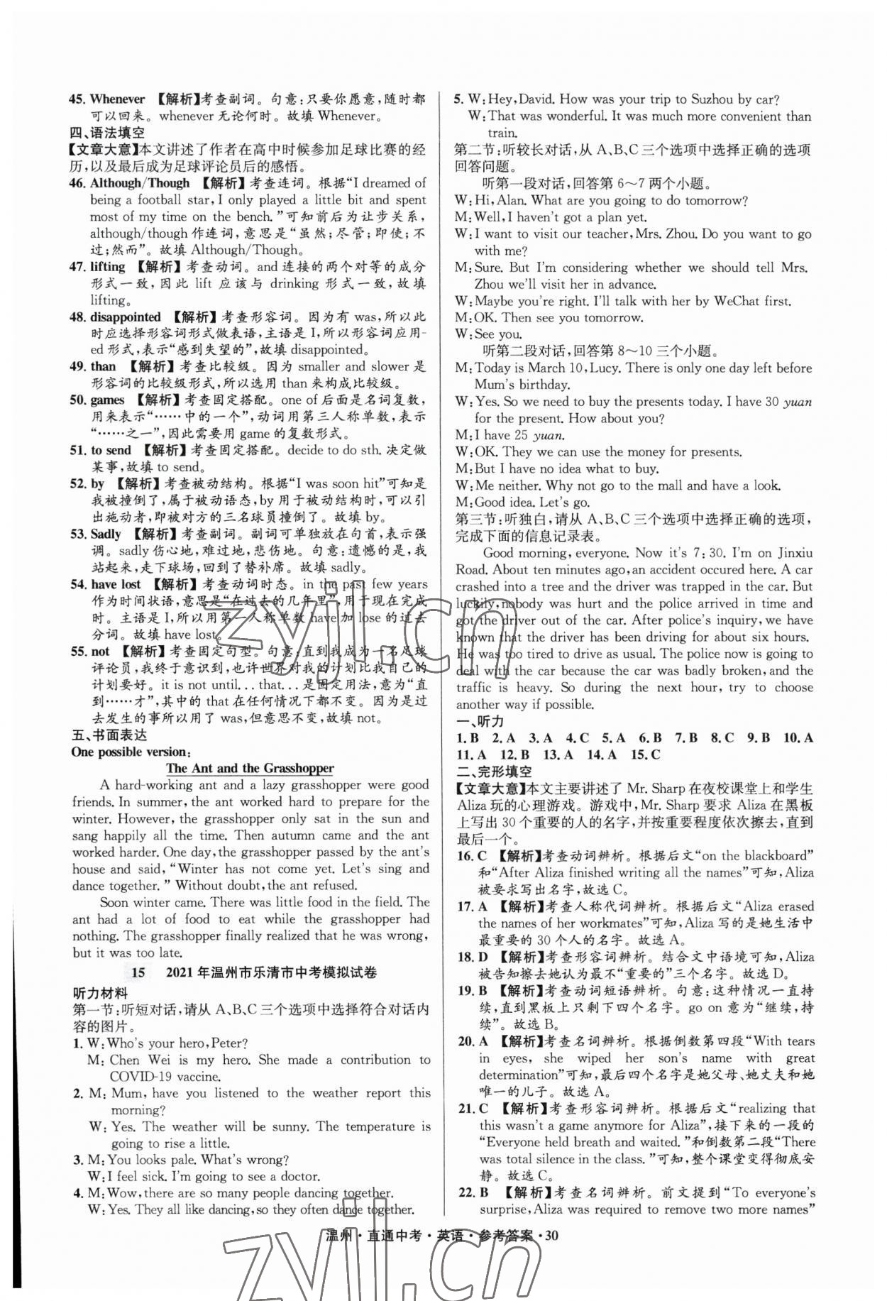 注:目前有些书本章节名称可能整理的还不是很完善,但都是按照顺序排列的,请同学们按照顺序仔细查找。练习册 2023年直通中考中考试题精编英语温州专版 答案主要是用来给同学们做完题方便对答案用的,请勿直接抄袭。