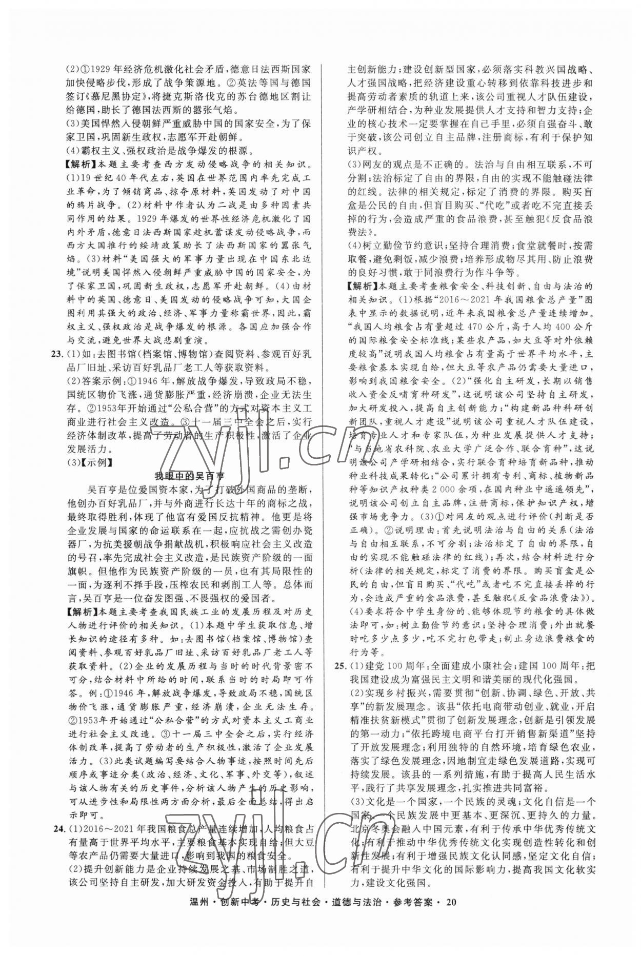 2023年直通中考中考试题精编历史与社会道德与法治温州专版