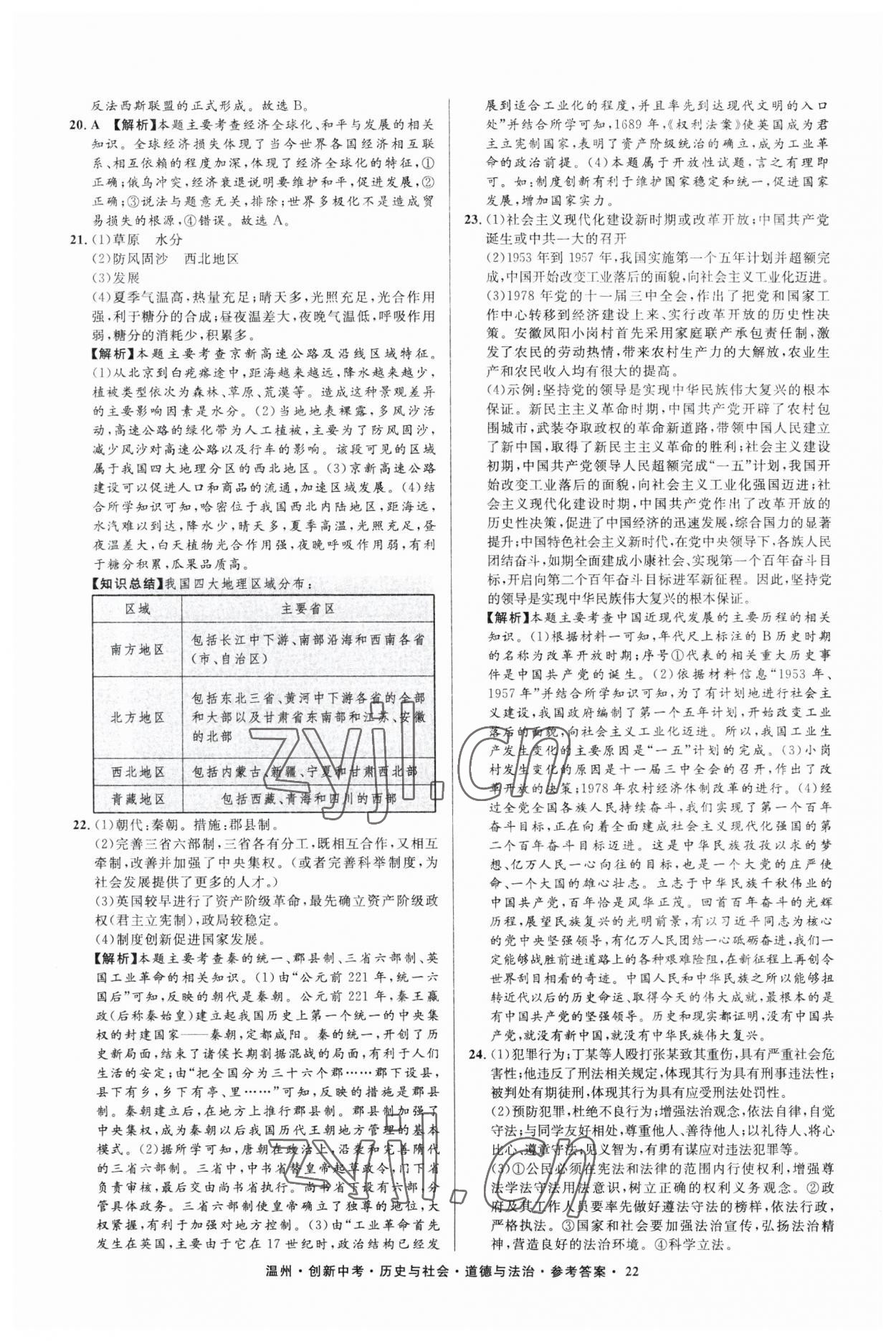 2023年直通中考中考试题精编历史与社会道德与法治温州专版