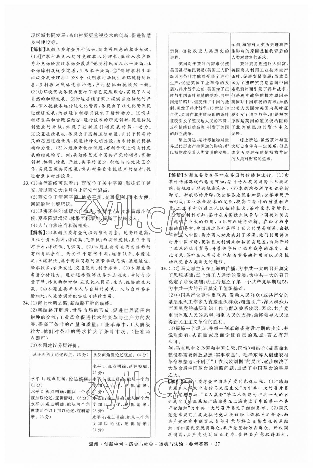2023年直通中考中考试题精编历史与社会道德与法治温州专版