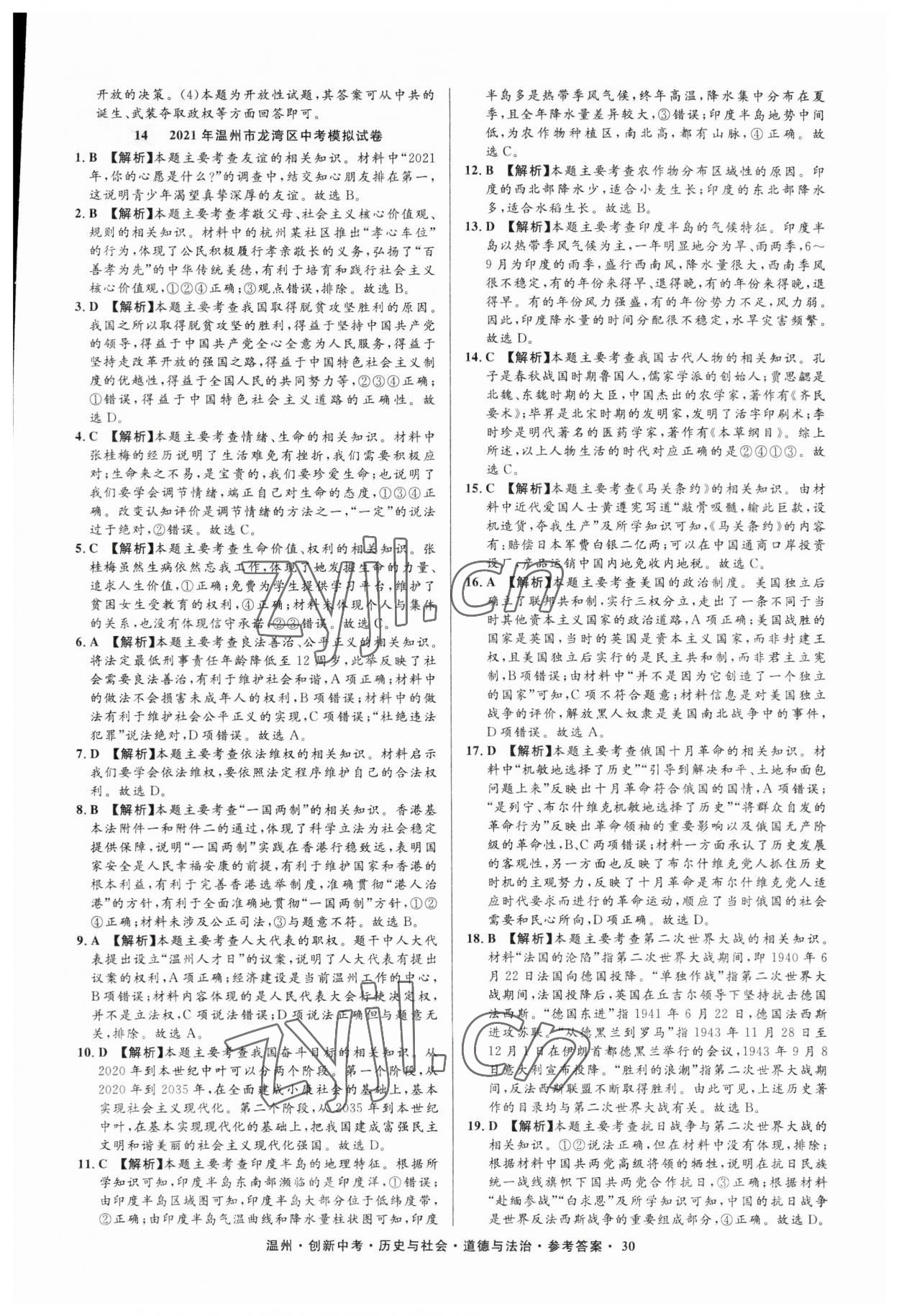 2023年直通中考中考试题精编历史与社会道德与法治温州专版