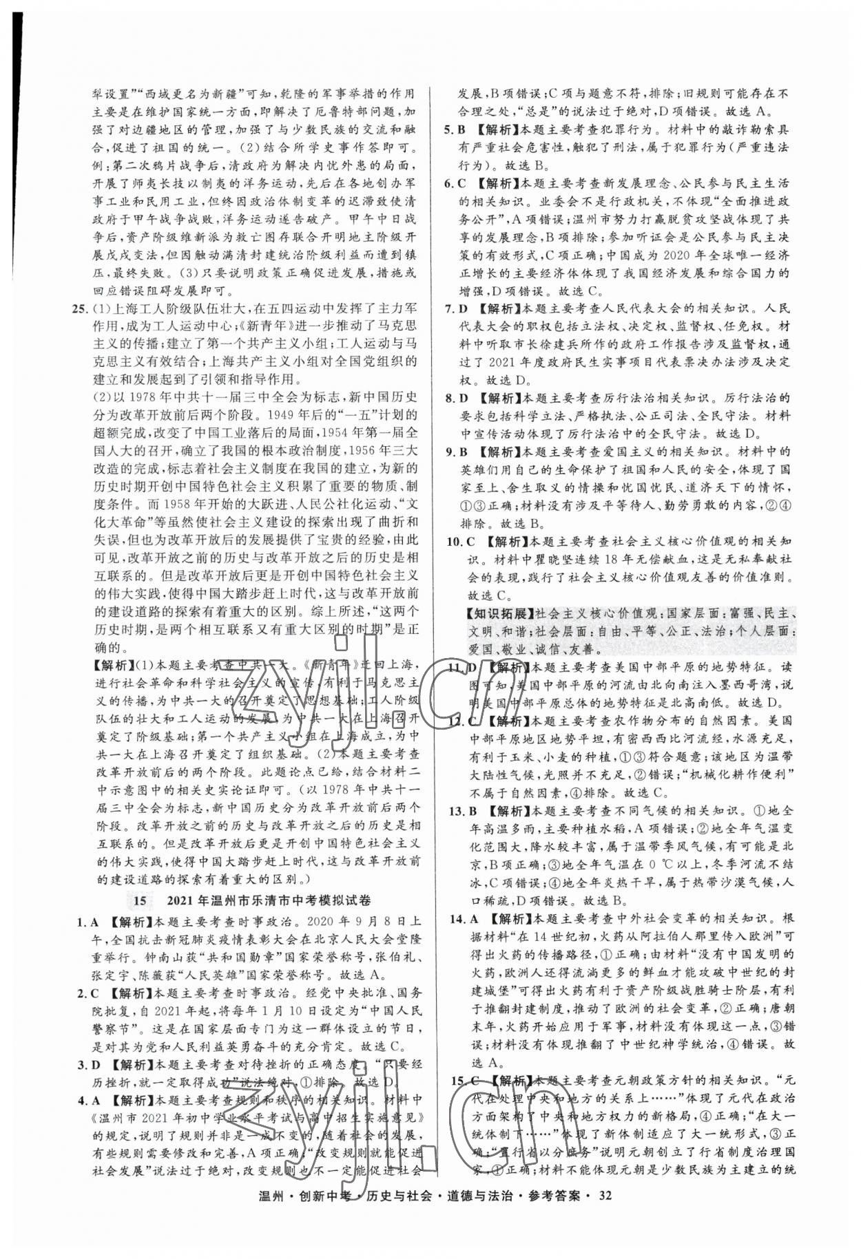 2023年直通中考中考试题精编历史与社会道德与法治温州专版