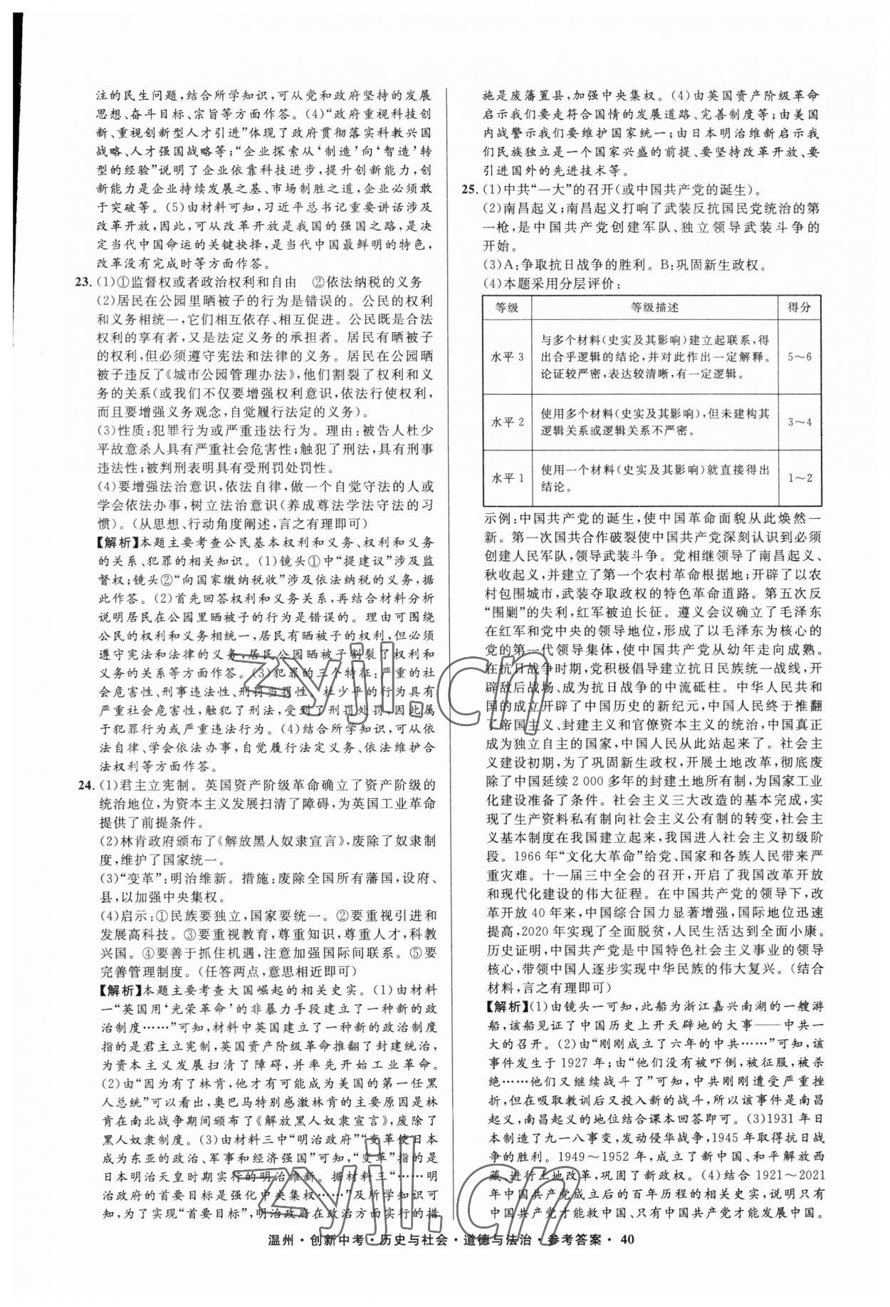 2023年直通中考中考试题精编历史与社会道德与法治温州专版