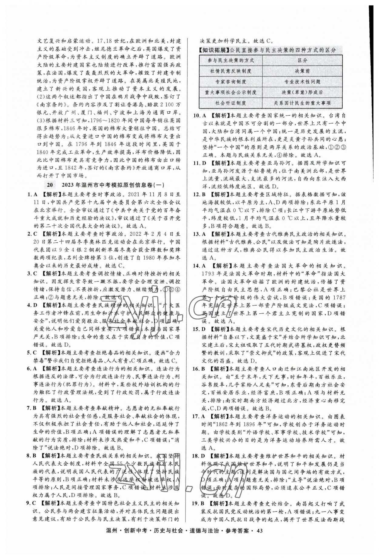 2023年直通中考中考试题精编历史与社会道德与法治温州专版