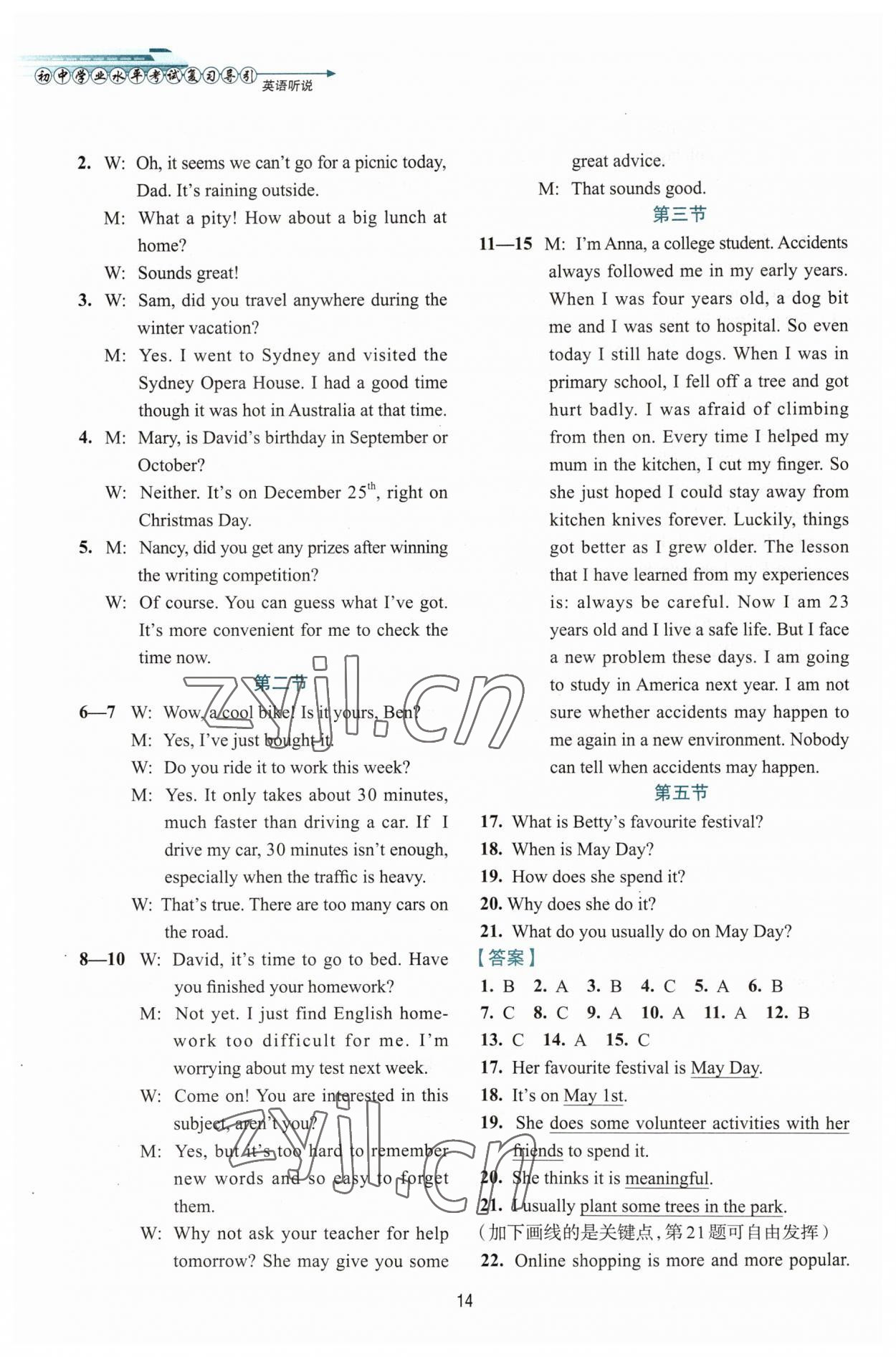 注:目前有些书本章节名称可能整理的还不是很完善,但都是按照顺序排列的,请同学们按照顺序仔细查找。练习册 2023年初中学业水平考试复习导引英语听说中考英语 答案主要是用来给同学们做完题方便对答案用的,请勿直接抄袭。