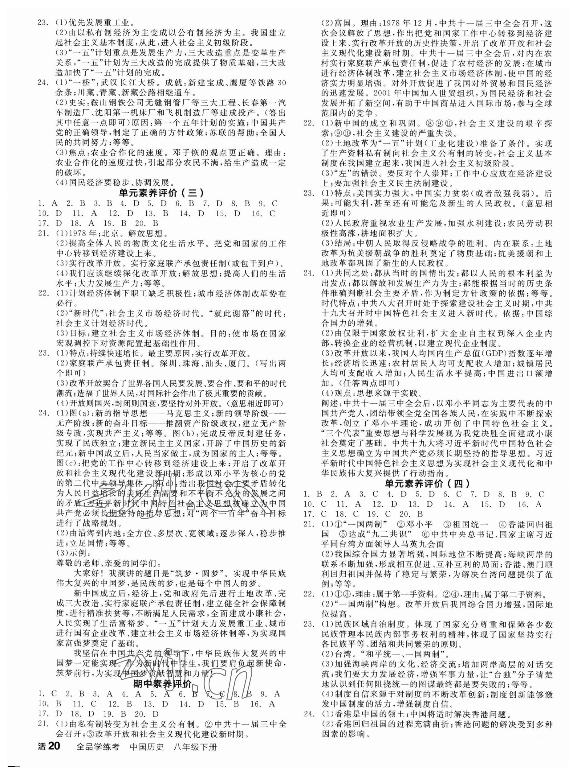 《2023年全品学练考八年级历史下册人教版江西专版》