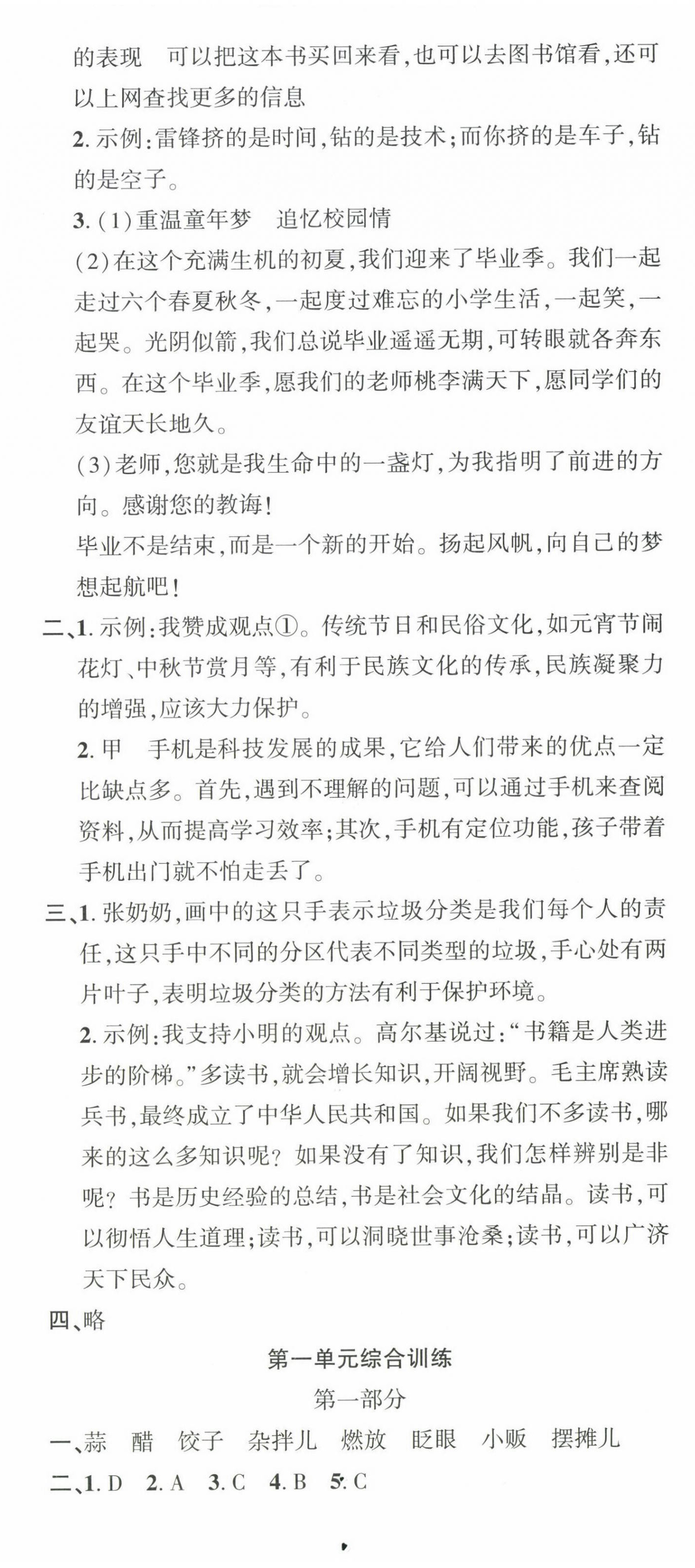 注:目前有些书本章节名称可能整理的还不是很完善,但都是按照顺序排列的,请同学们按照顺序仔细查找。练习册 2023年名校课堂六年级语文下册人教版福建专版 答案主要是用来给同学们做完题方便对答案用的,请勿直接抄袭。