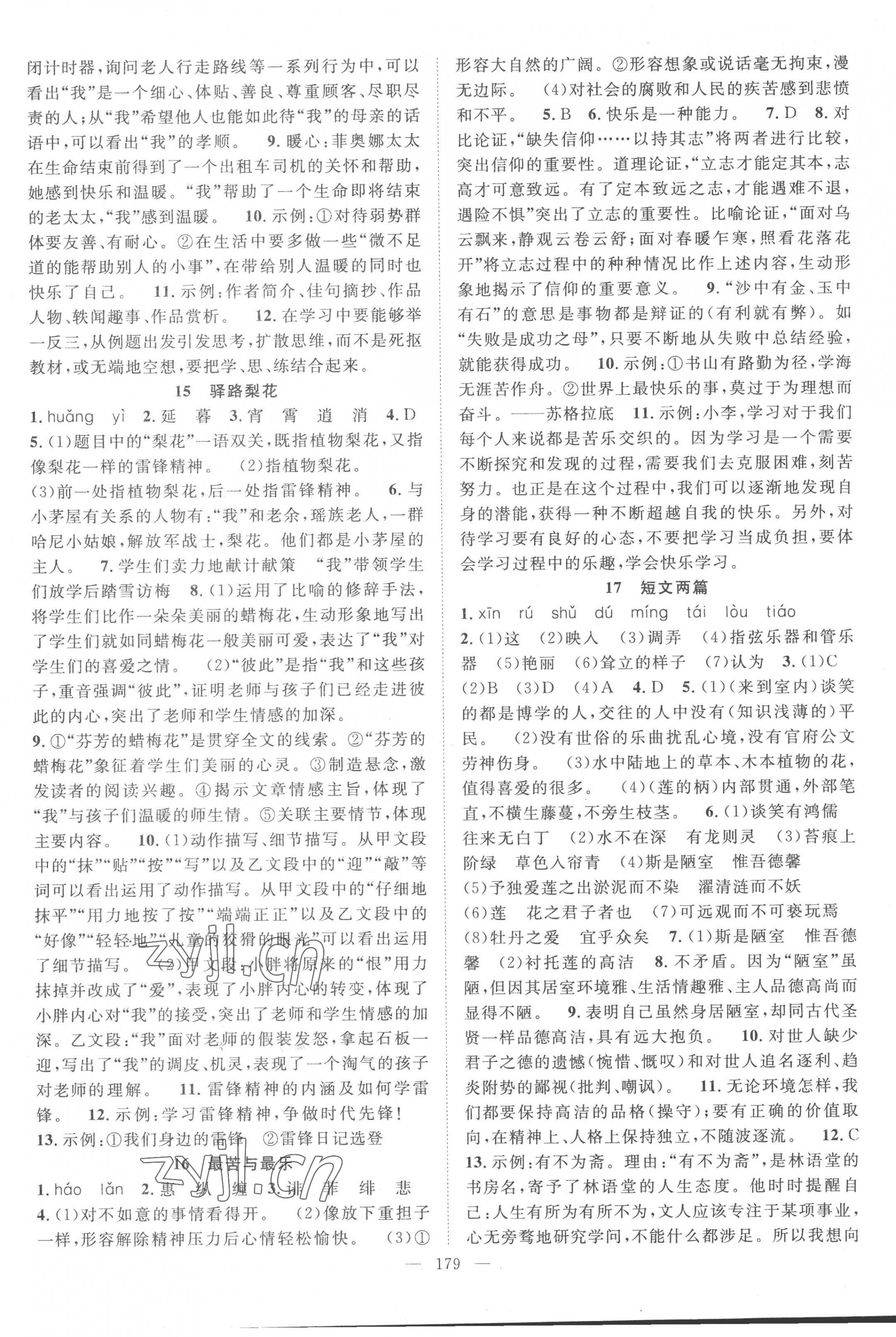 注:目前有些书本章节名称可能整理的还不是很完善,但都是按照顺序排列的,请同学们按照顺序仔细查找。练习册 2023年名师学案七年级语文下册人教版荆州专版 答案主要是用来给同学们做完题方便对答案用的,请勿直接抄袭。