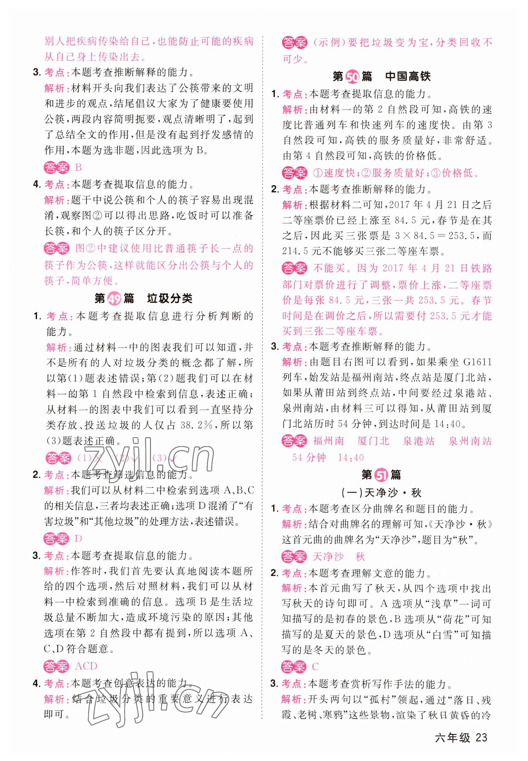 注:目前有些书本章节名称可能整理的还不是很完善,但都是按照顺序排列的,请同学们按照顺序仔细查找。练习册 2023年百校名师阅读真题80篇六年级彩虹版 答案主要是用来给同学们做完题方便对答案用的,请勿直接抄袭。