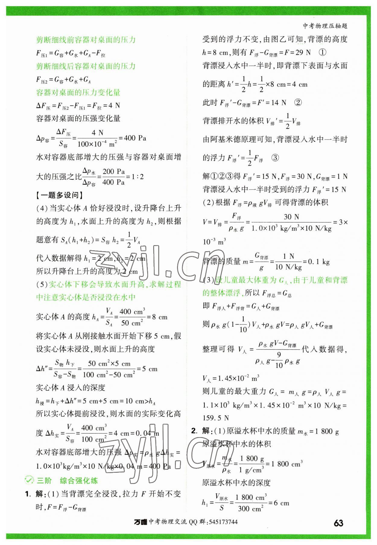注:目前有些书本章节名称可能整理的还不是很完善,但都是按照顺序排列的,请同学们按照顺序仔细查找。练习册 2023年万唯中考压轴题物理 答案主要是用来给同学们做完题方便对答案用的,请勿直接抄袭。