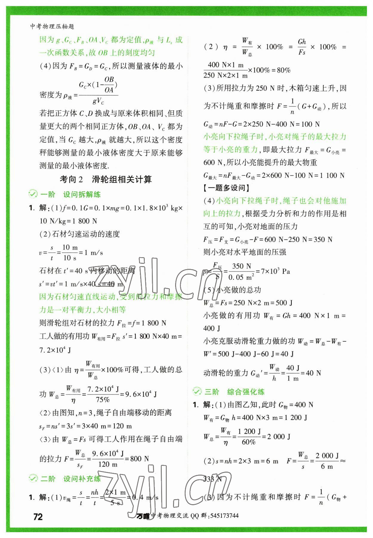 注:目前有些书本章节名称可能整理的还不是很完善,但都是按照顺序排列的,请同学们按照顺序仔细查找。练习册 2023年万唯中考压轴题物理 答案主要是用来给同学们做完题方便对答案用的,请勿直接抄袭。