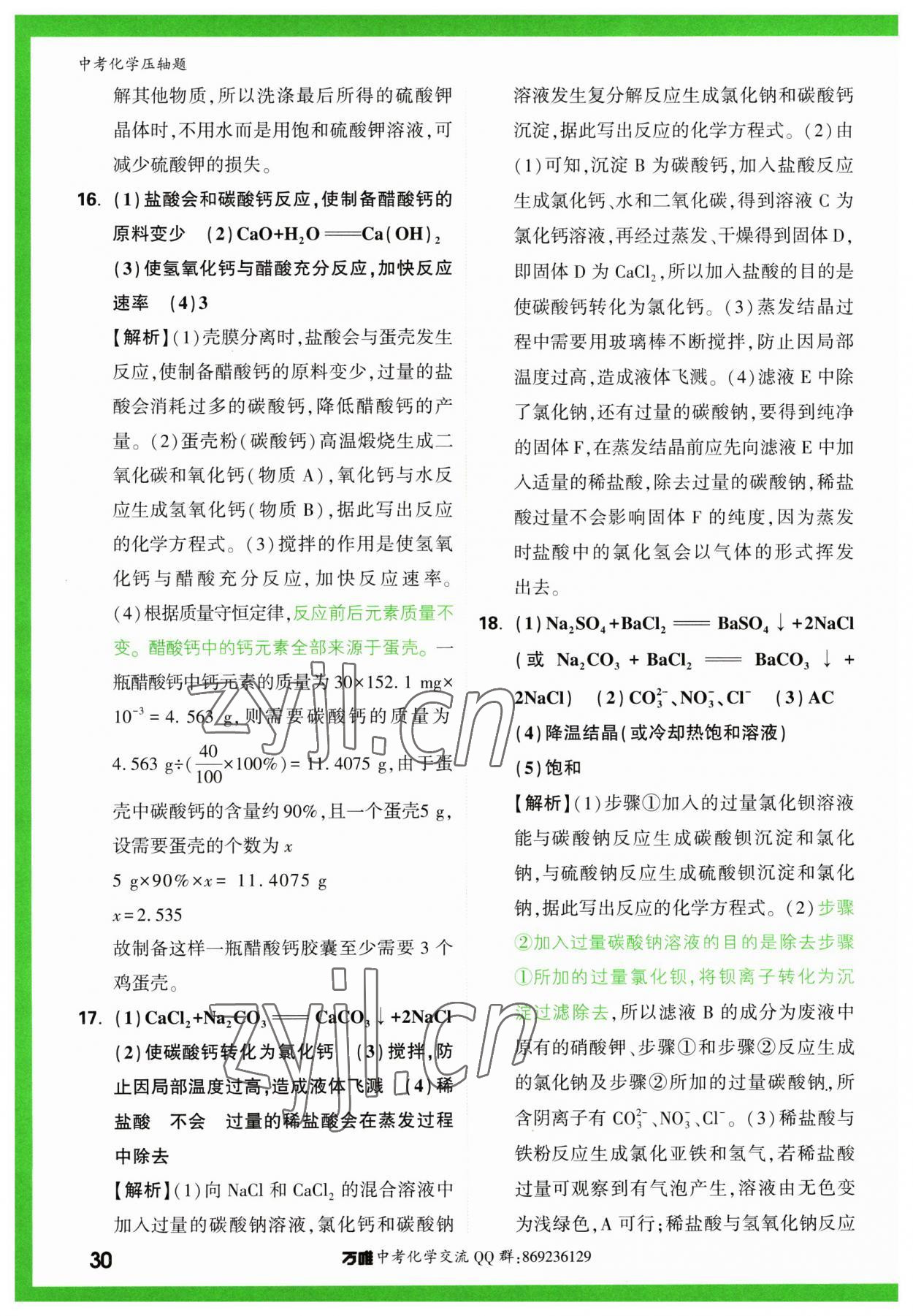 注:目前有些书本章节名称可能整理的还不是很完善,但都是按照顺序排列的,请同学们按照顺序仔细查找。练习册 2023年万唯中考压轴题化学中考 答案主要是用来给同学们做完题方便对答案用的,请勿直接抄袭。