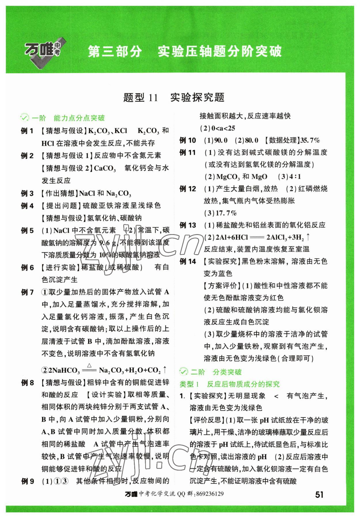 注:目前有些书本章节名称可能整理的还不是很完善,但都是按照顺序排列的,请同学们按照顺序仔细查找。练习册 2023年万唯中考压轴题化学中考 答案主要是用来给同学们做完题方便对答案用的,请勿直接抄袭。