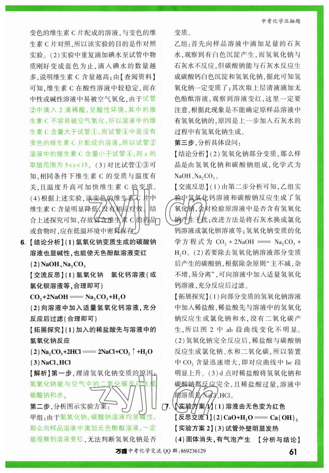 注:目前有些书本章节名称可能整理的还不是很完善,但都是按照顺序排列的,请同学们按照顺序仔细查找。练习册 2023年万唯中考压轴题化学中考 答案主要是用来给同学们做完题方便对答案用的,请勿直接抄袭。