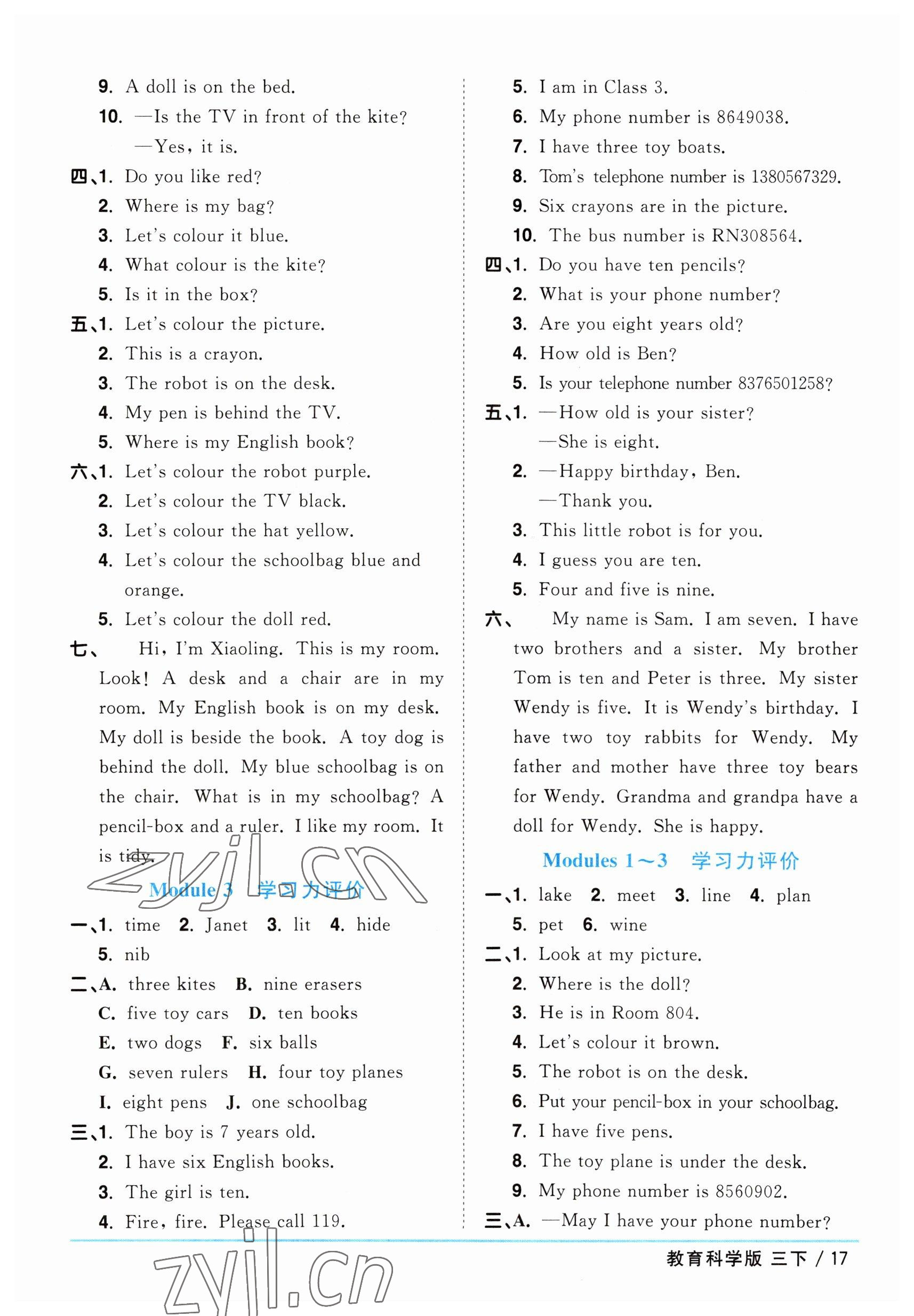 注:目前有些书本章节名称可能整理的还不是很完善,但都是按照顺序排列的,请同学们按照顺序仔细查找。练习册 2023年阳光同学课时优化作业三年级英语下册教育科学版 答案主要是用来给同学们做完题方便对答案用的,请勿直接抄袭。