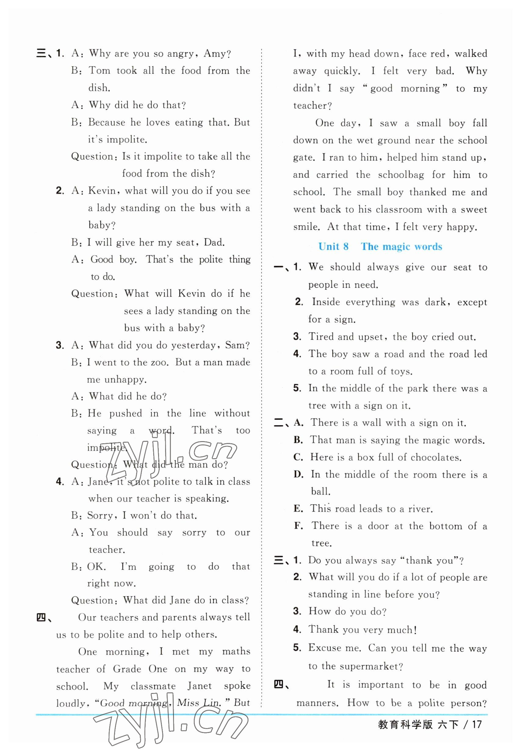 注:目前有些书本章节名称可能整理的还不是很完善,但都是按照顺序排列的,请同学们按照顺序仔细查找。练习册 2023年阳光同学课时优化作业六年级英语下册教育科学版 答案主要是用来给同学们做完题方便对答案用的,请勿直接抄袭。