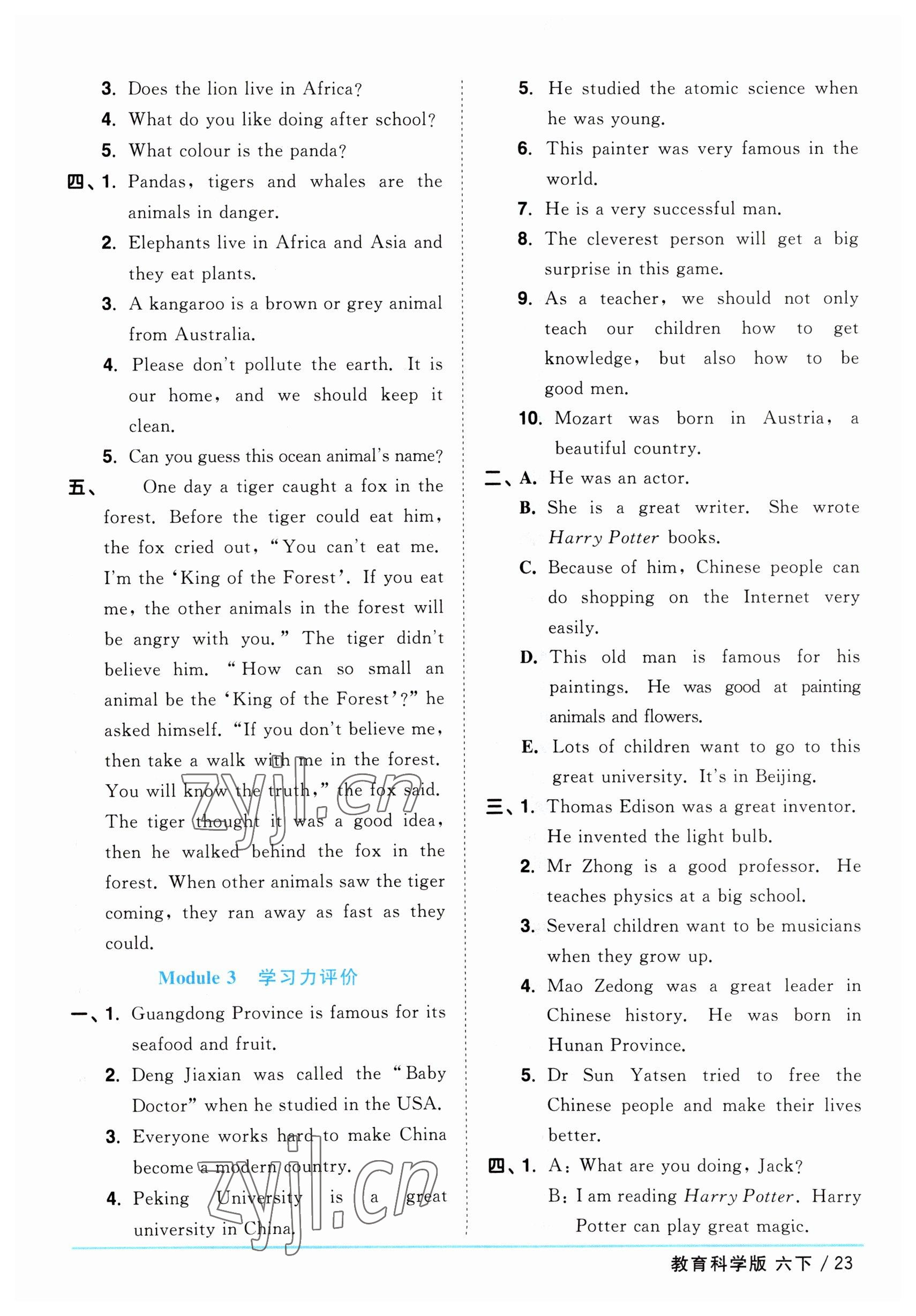 注:目前有些书本章节名称可能整理的还不是很完善,但都是按照顺序排列的,请同学们按照顺序仔细查找。练习册 2023年阳光同学课时优化作业六年级英语下册教育科学版 答案主要是用来给同学们做完题方便对答案用的,请勿直接抄袭。