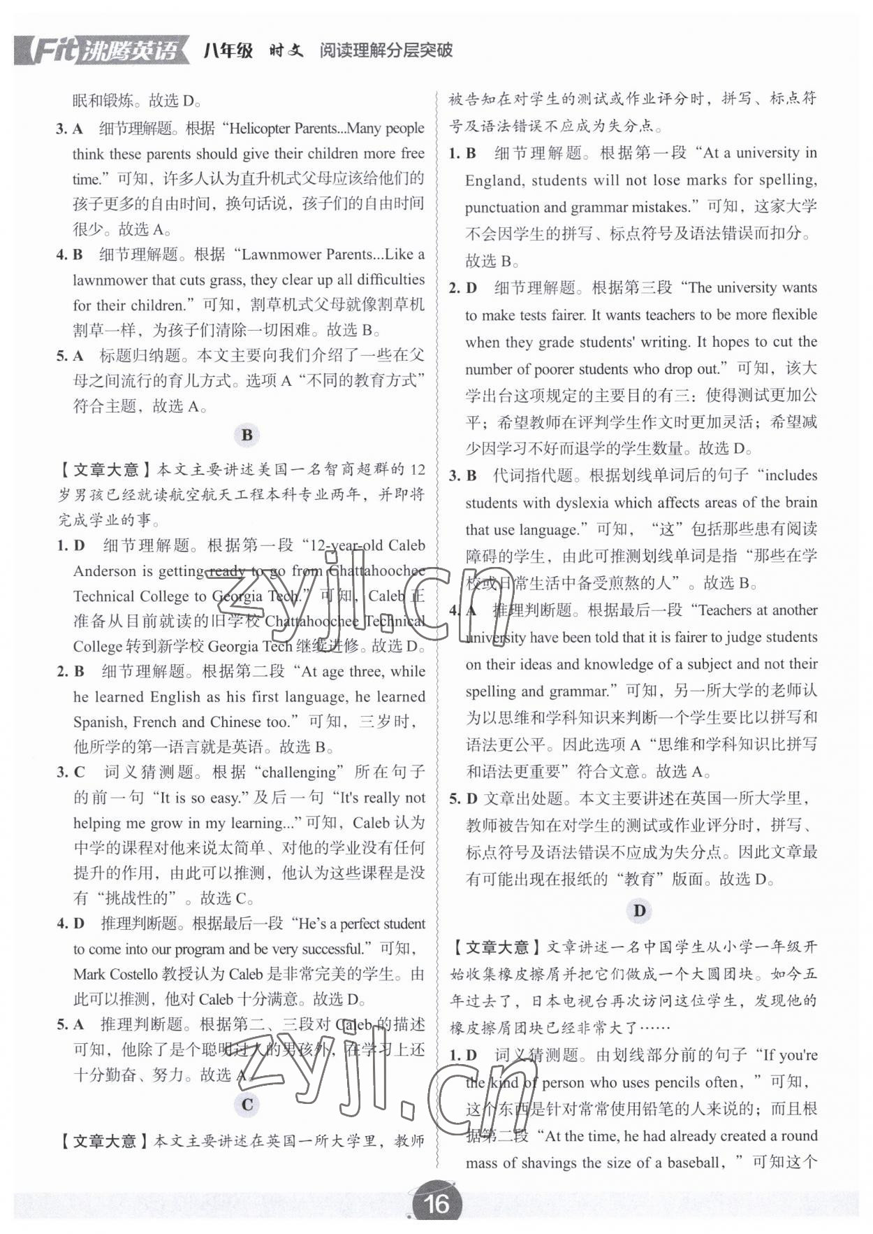 注:目前有些书本章节名称可能整理的还不是很完善,但都是按照顺序排列的,请同学们按照顺序仔细查找。练习册 2023年沸腾英语时文阅读理解分层突破八年级深圳专版 答案主要是用来给同学们做完题方便对答案用的,请勿直接抄袭。