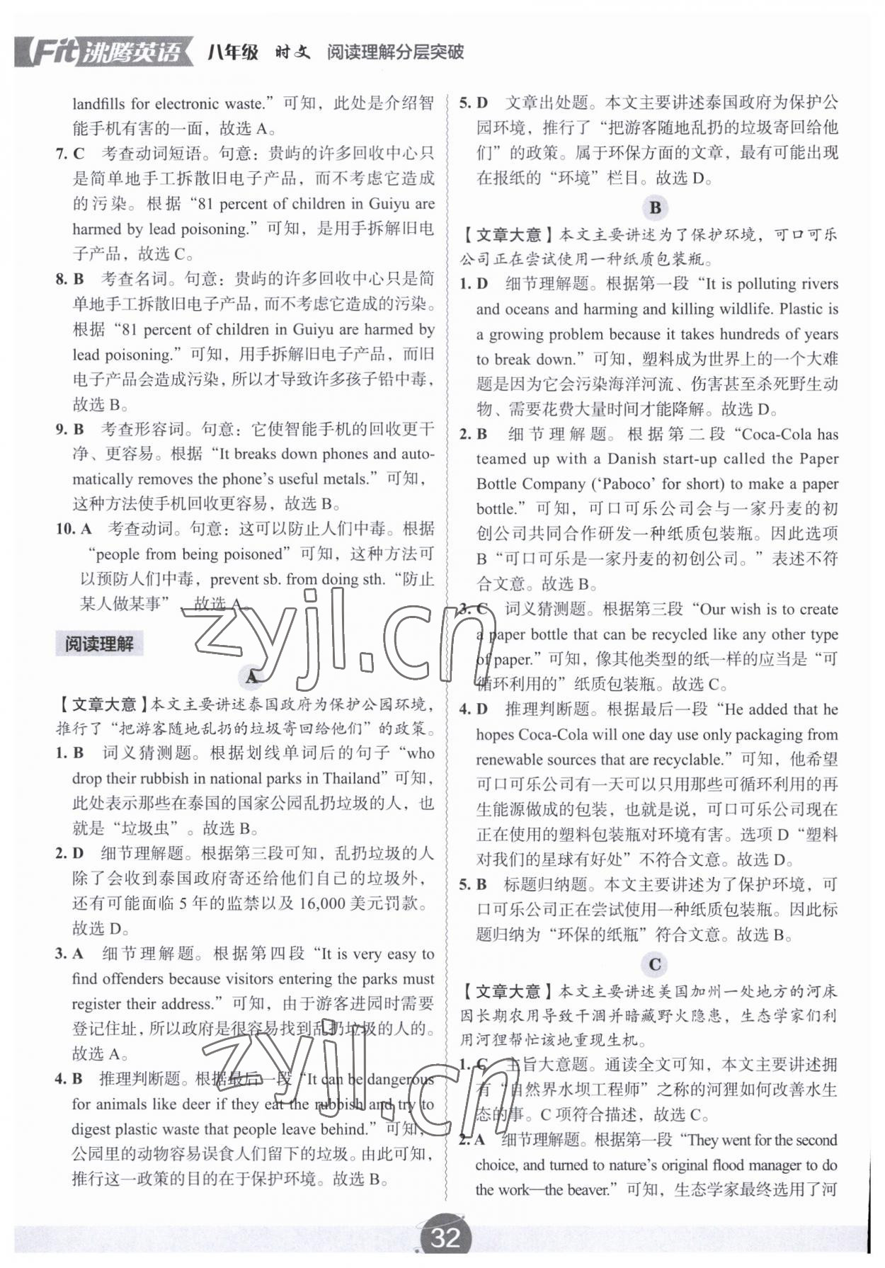 注:目前有些书本章节名称可能整理的还不是很完善,但都是按照顺序排列的,请同学们按照顺序仔细查找。练习册 2023年沸腾英语时文阅读理解分层突破八年级深圳专版 答案主要是用来给同学们做完题方便对答案用的,请勿直接抄袭。
