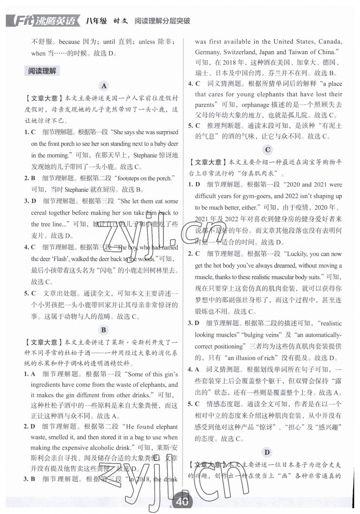 注:目前有些书本章节名称可能整理的还不是很完善,但都是按照顺序排列的,请同学们按照顺序仔细查找。练习册 2023年沸腾英语时文阅读理解分层突破八年级深圳专版 答案主要是用来给同学们做完题方便对答案用的,请勿直接抄袭。