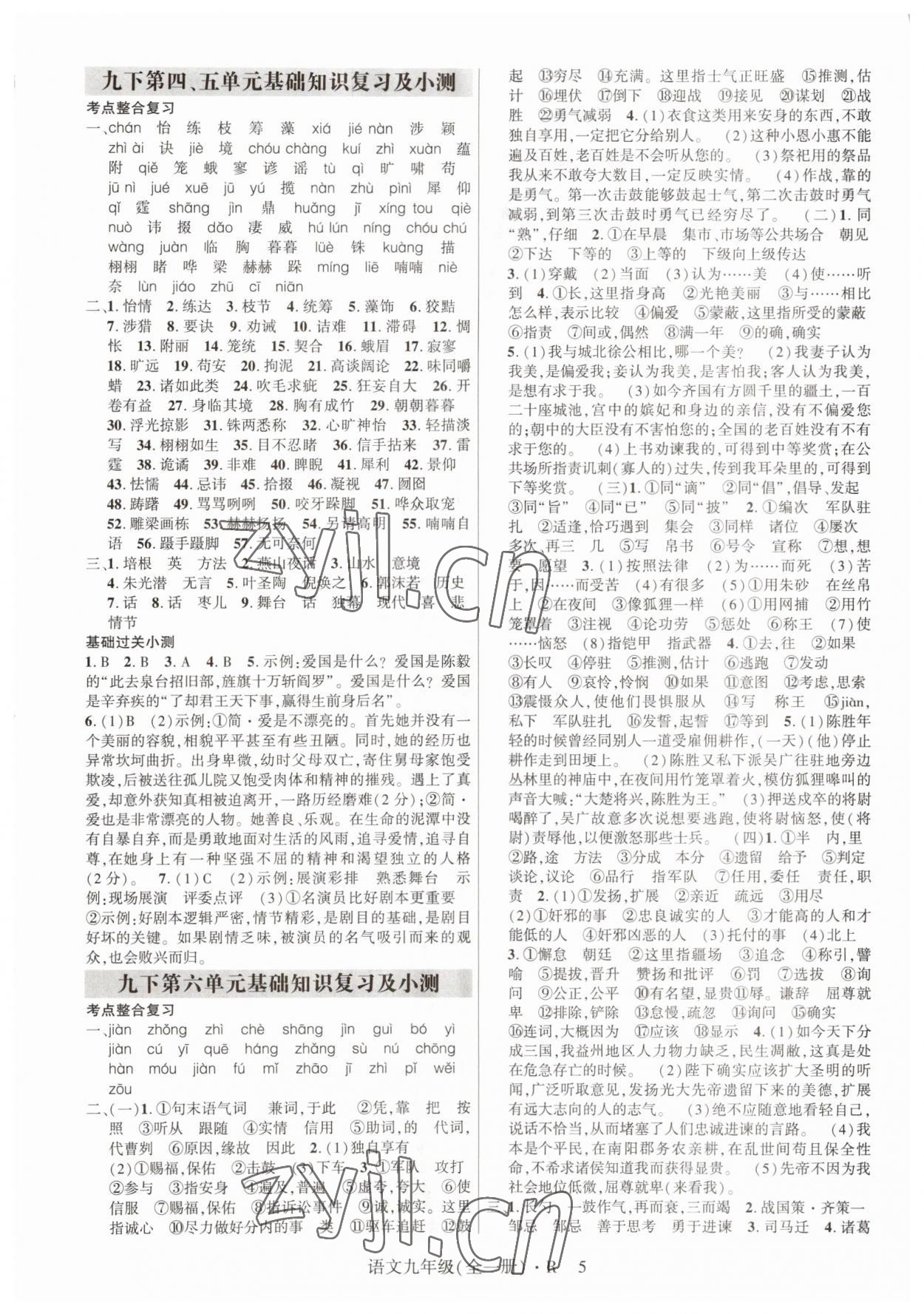 注:目前有些书本章节名称可能整理的还不是很完善,但都是按照顺序排列的,请同学们按照顺序仔细查找。练习册 2023年状元一卷通九年级语文全一册人教版 答案主要是用来给同学们做完题方便对答案用的,请勿直接抄袭。