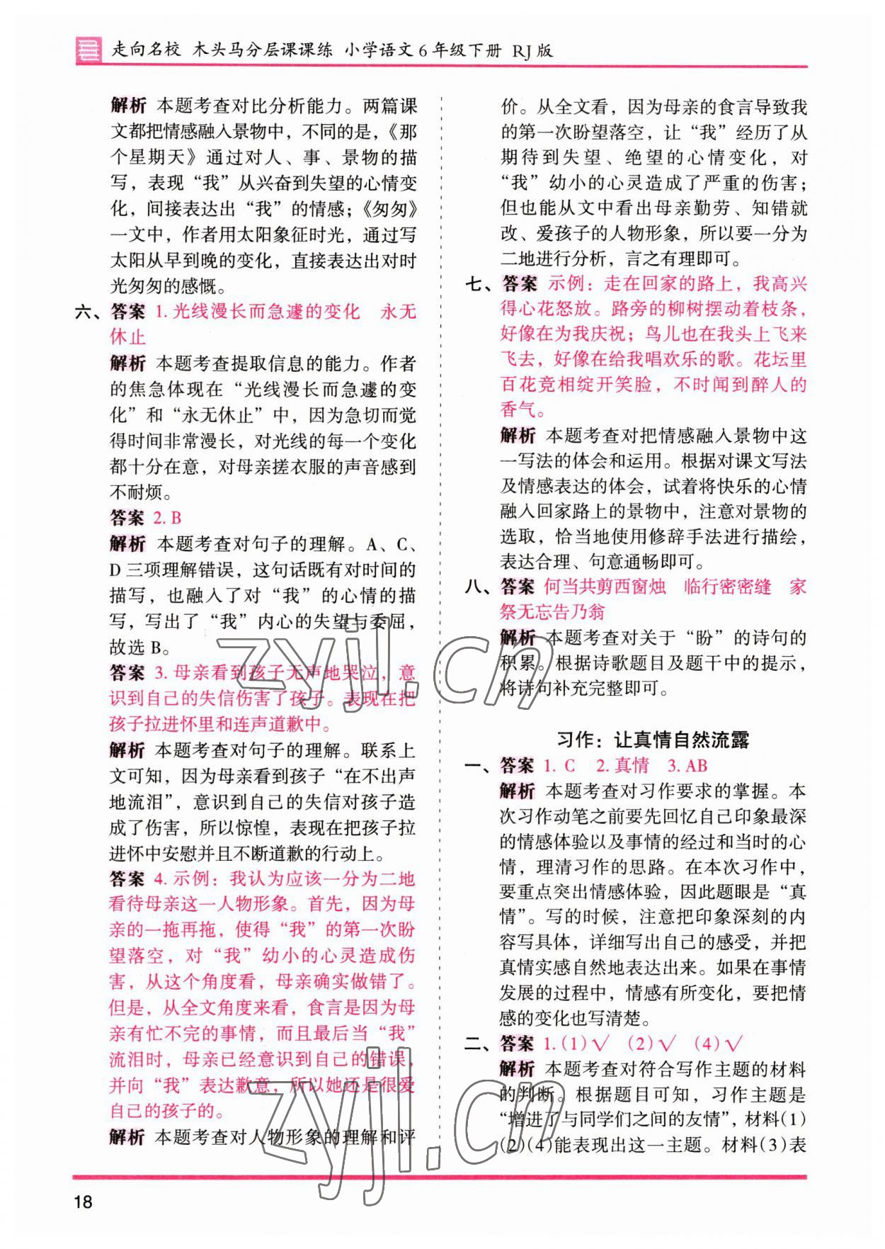 注:目前有些书本章节名称可能整理的还不是很完善,但都是按照顺序排列的,请同学们按照顺序仔细查找。练习册 2023年木头马分层课课练六年级语文下册人教版 答案主要是用来给同学们做完题方便对答案用的,请勿直接抄袭。