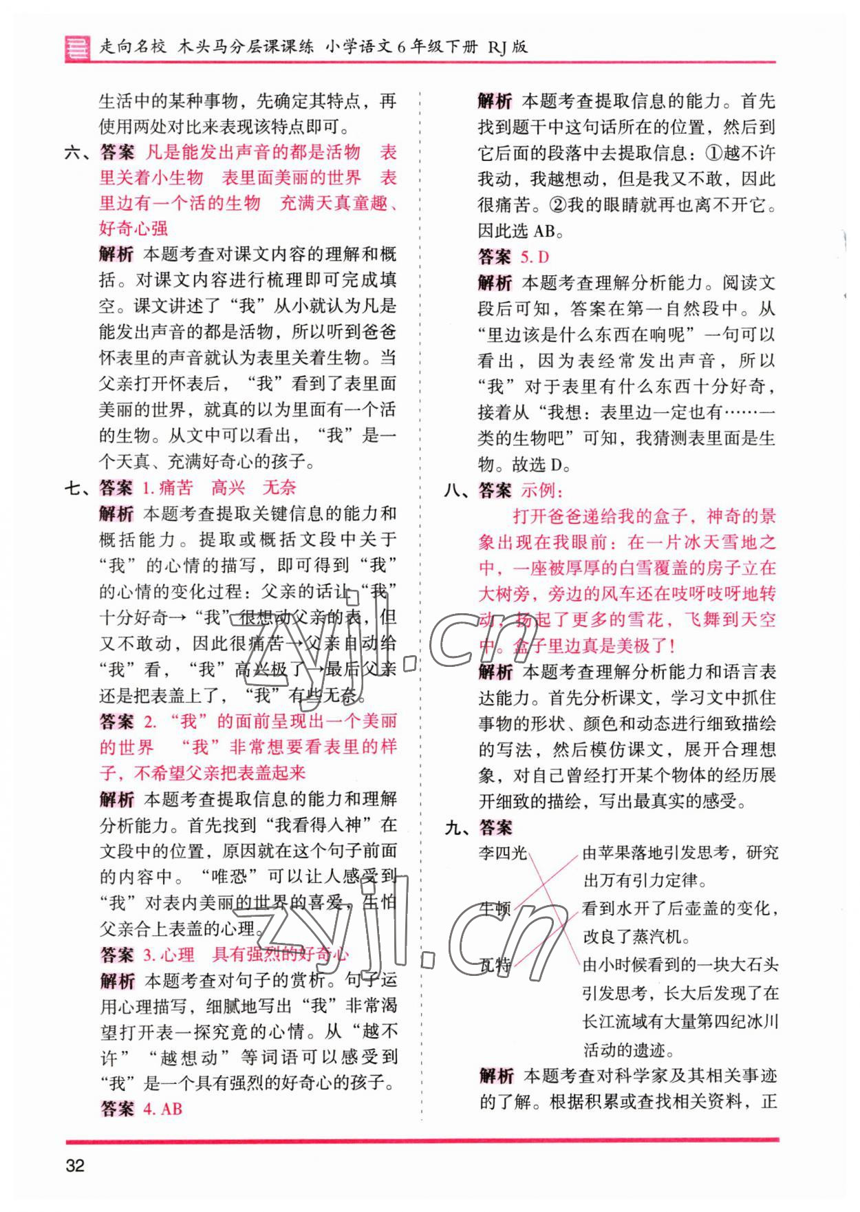 注:目前有些书本章节名称可能整理的还不是很完善,但都是按照顺序排列的,请同学们按照顺序仔细查找。练习册 2023年木头马分层课课练六年级语文下册人教版 答案主要是用来给同学们做完题方便对答案用的,请勿直接抄袭。